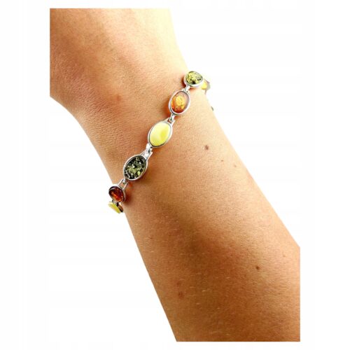 • Wyprzedaż Bransoletka srebrna z wielokolorowym bursztynem