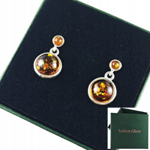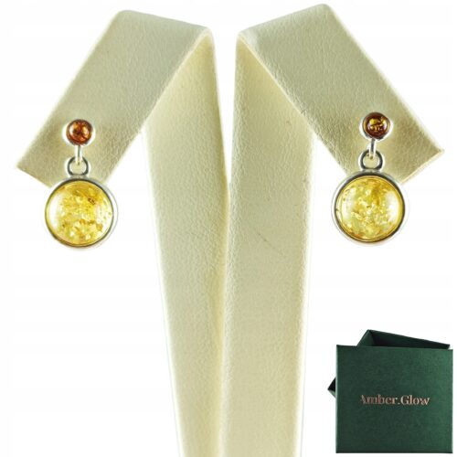 Kolczyki srebrne z bursztynem – wyjątkowe piękne – srebro 925 – zapięcie angielskie