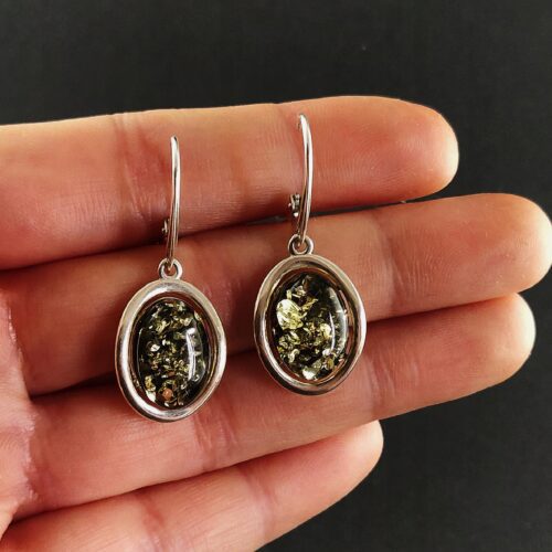 Kolczyki srebrne z zielonym bursztynem – wiszące