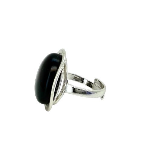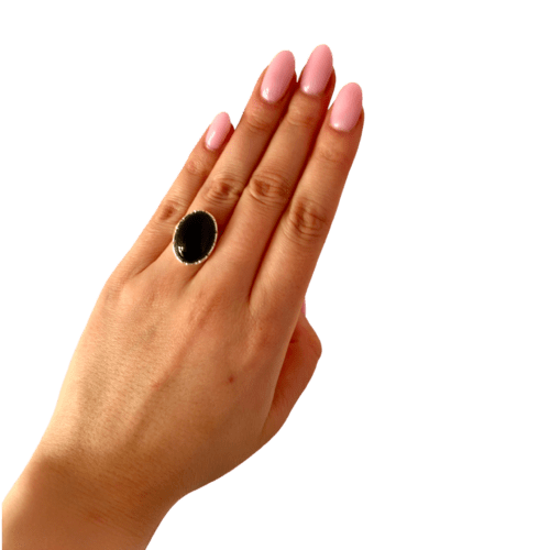 PIERŚCIONEK SREBRNY REGULOWANY Z ONYKSEM – OWALNY – SREBRO 925