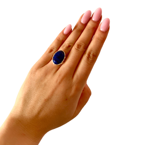 PIERŚCIONEK SREBRNY REGULOWANY Z LAPISEM LAZULI – OWALNY – SREBRO 925