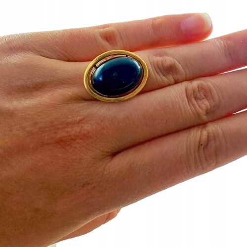 Pierścionek złoty z dużym lapisem lazuli – Srebro pozłacane 925 – Piękny elegancki