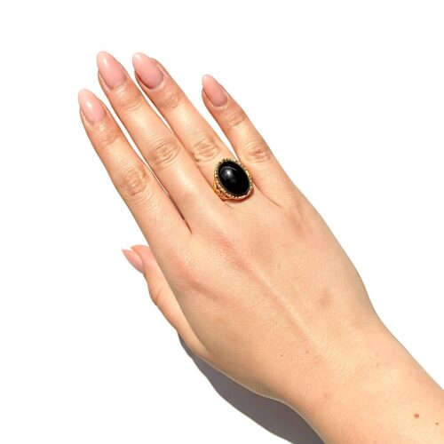 Pierścionek złoty z dużym onyksem – Srebro pozłacane 925 – Piękny delikatny