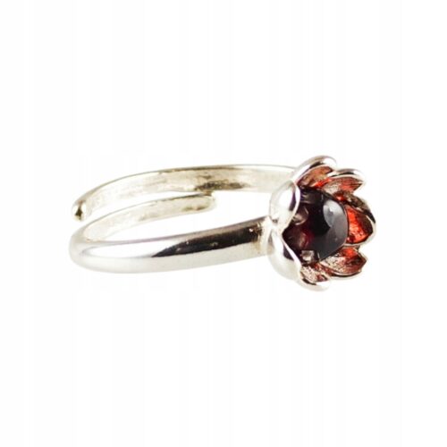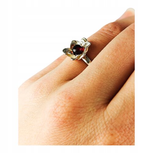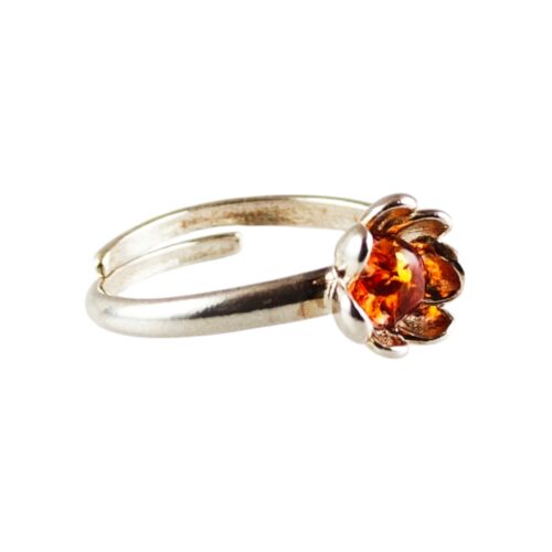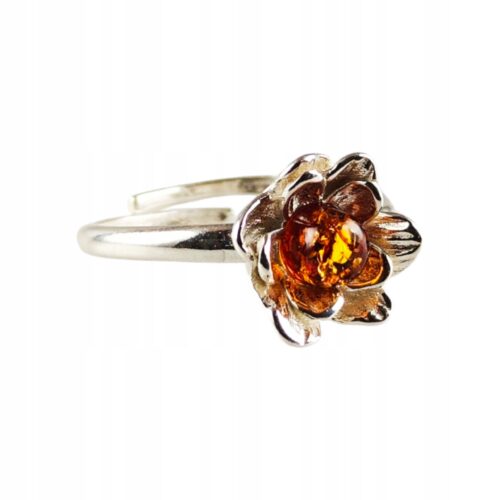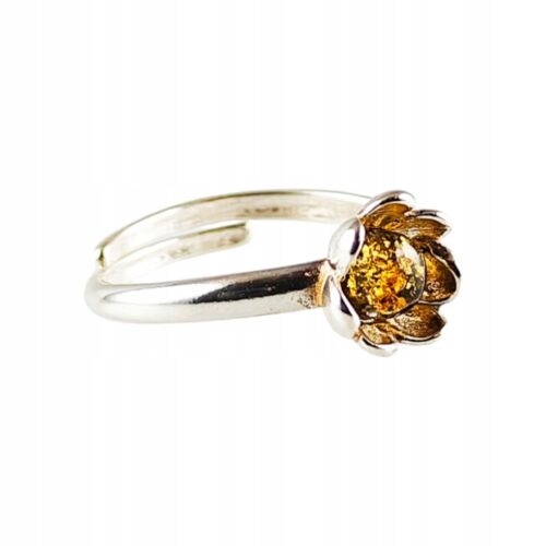 • WYPRZEDANEPierścionek srebrny z bursztynem - kwiatek