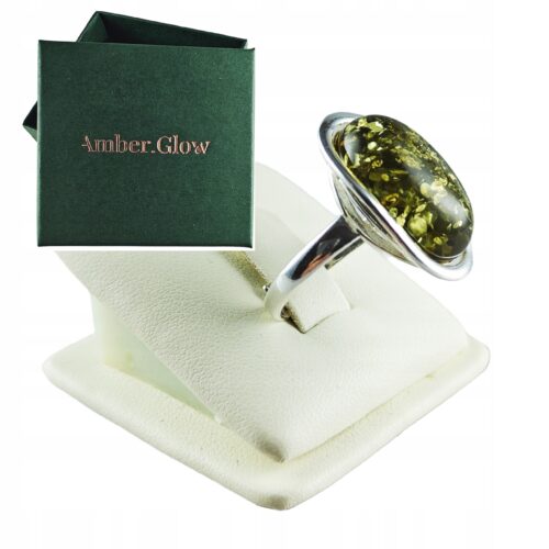• Pierścionek srebrny z bursztynem - owalny klasyczny