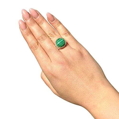 PIERŚCIONEK SREBRNY REGULOWANY Z MALACHITEM – OKRĄGŁY – SREBRO 925