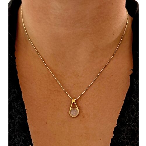 WISIOREK ZŁOTY z KWARCEM RÓŻOWYM – MINIMALISTYCZNY – SREBRO POZŁACANE 925