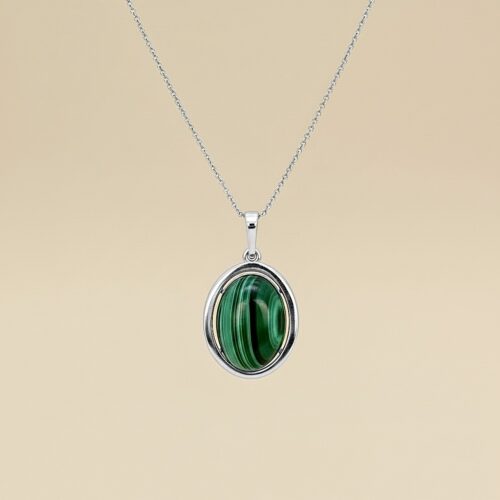 WISIOREK SREBRNY z MALACHITEM – MINIMALISTYCZNY – SREBRO 925