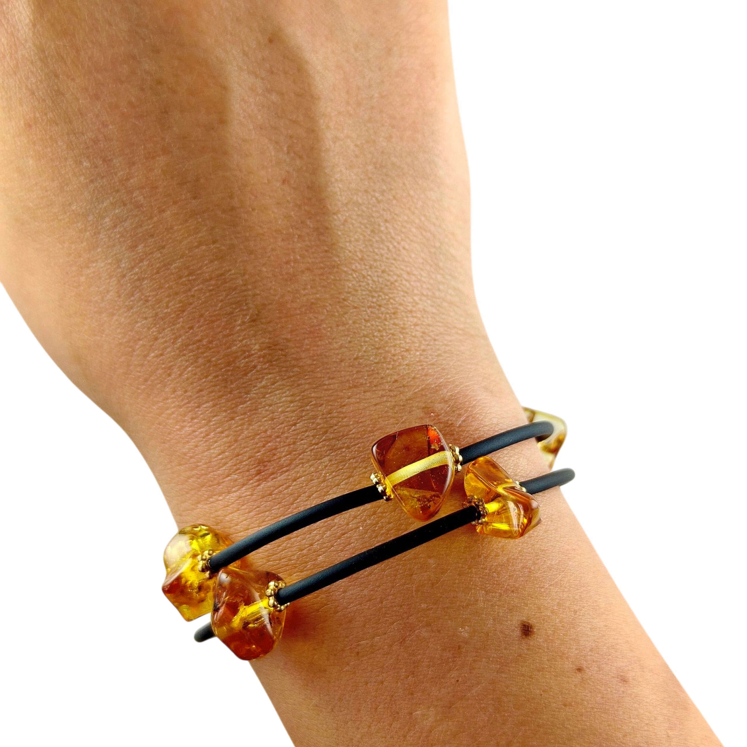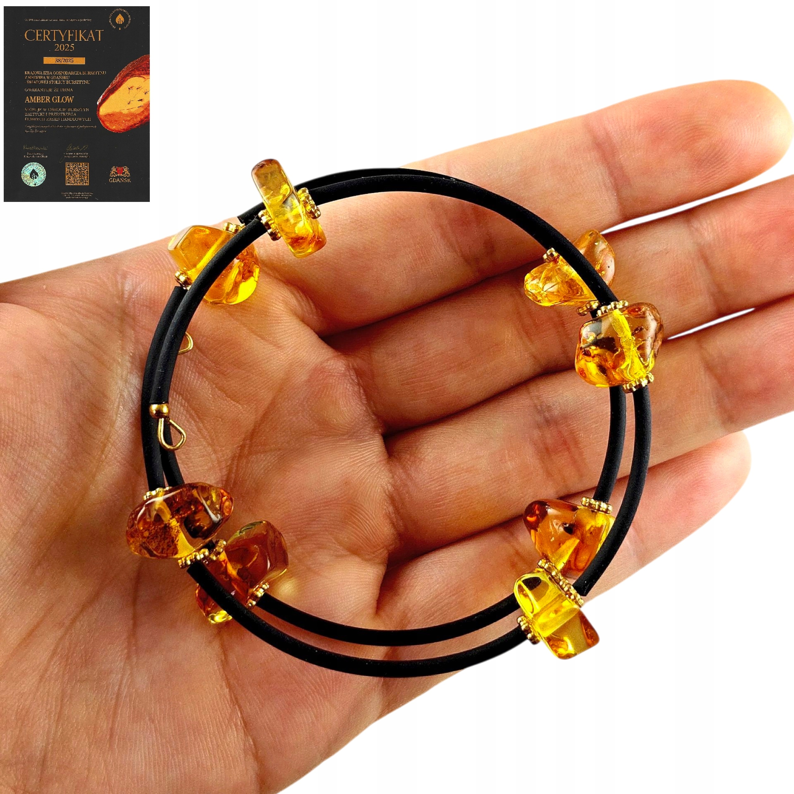 ✔️ Pomiędzy bursztynem znajdują się ozdobne przekładki ze stali w kolorze złotym, które nadają dodatkowego blasku bransoletce.