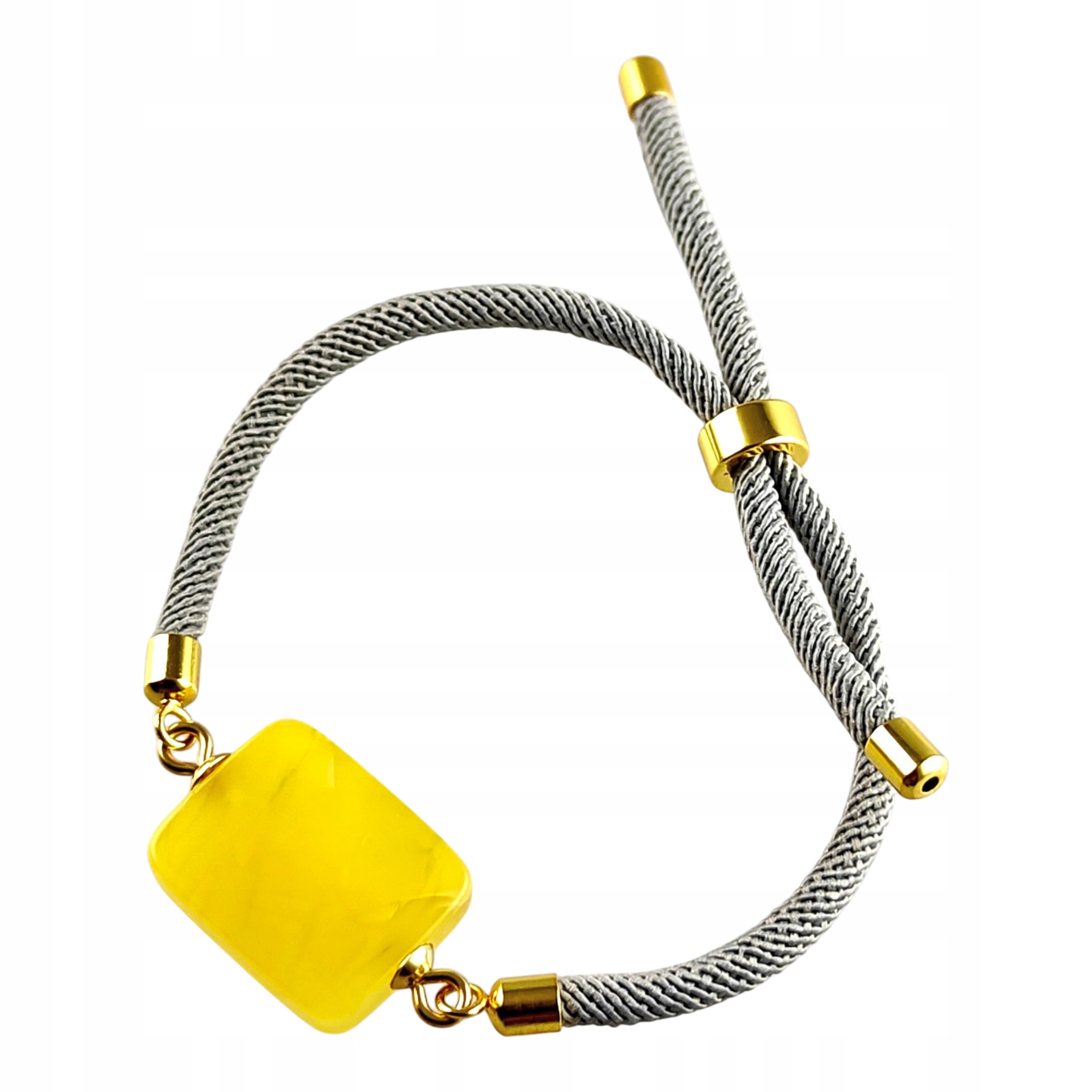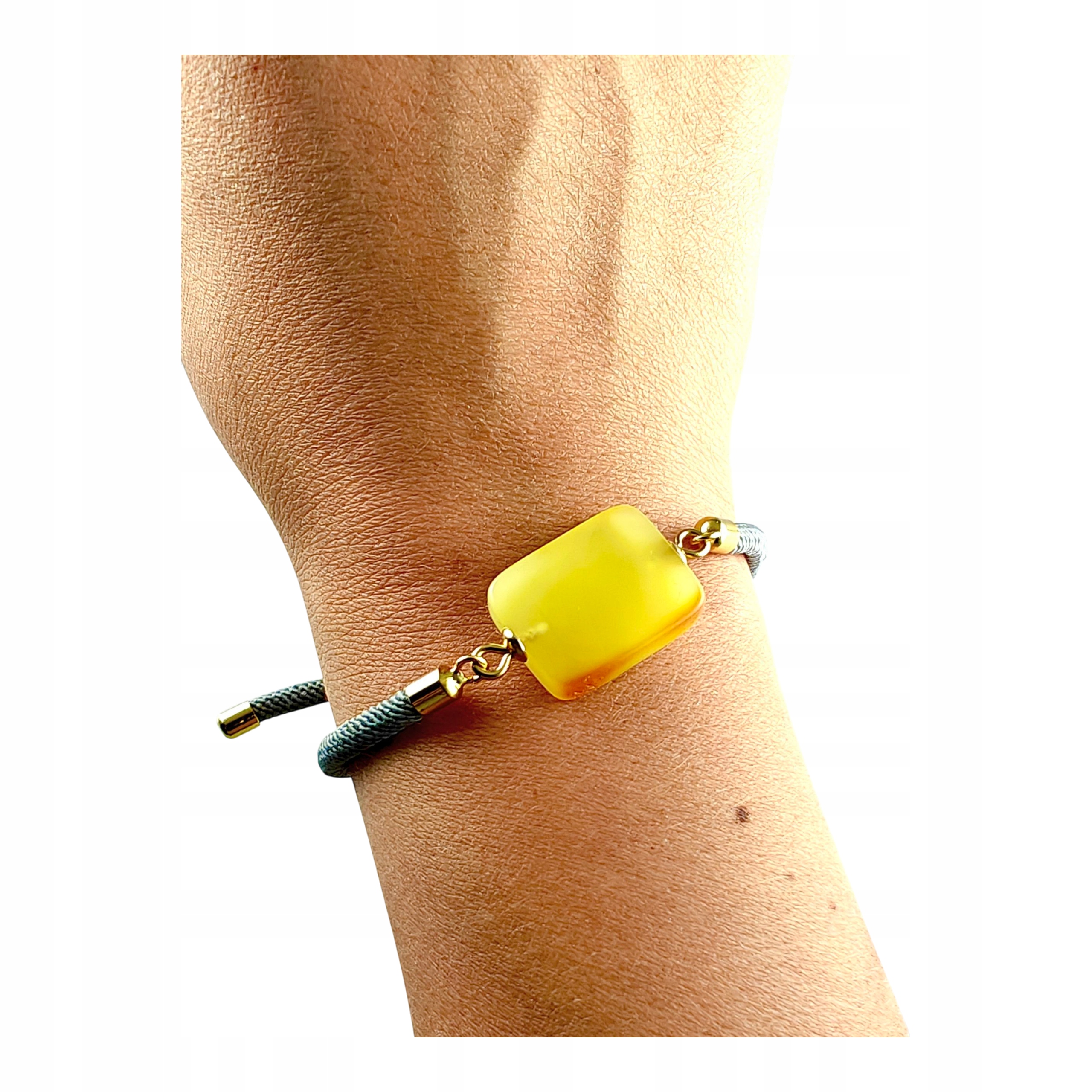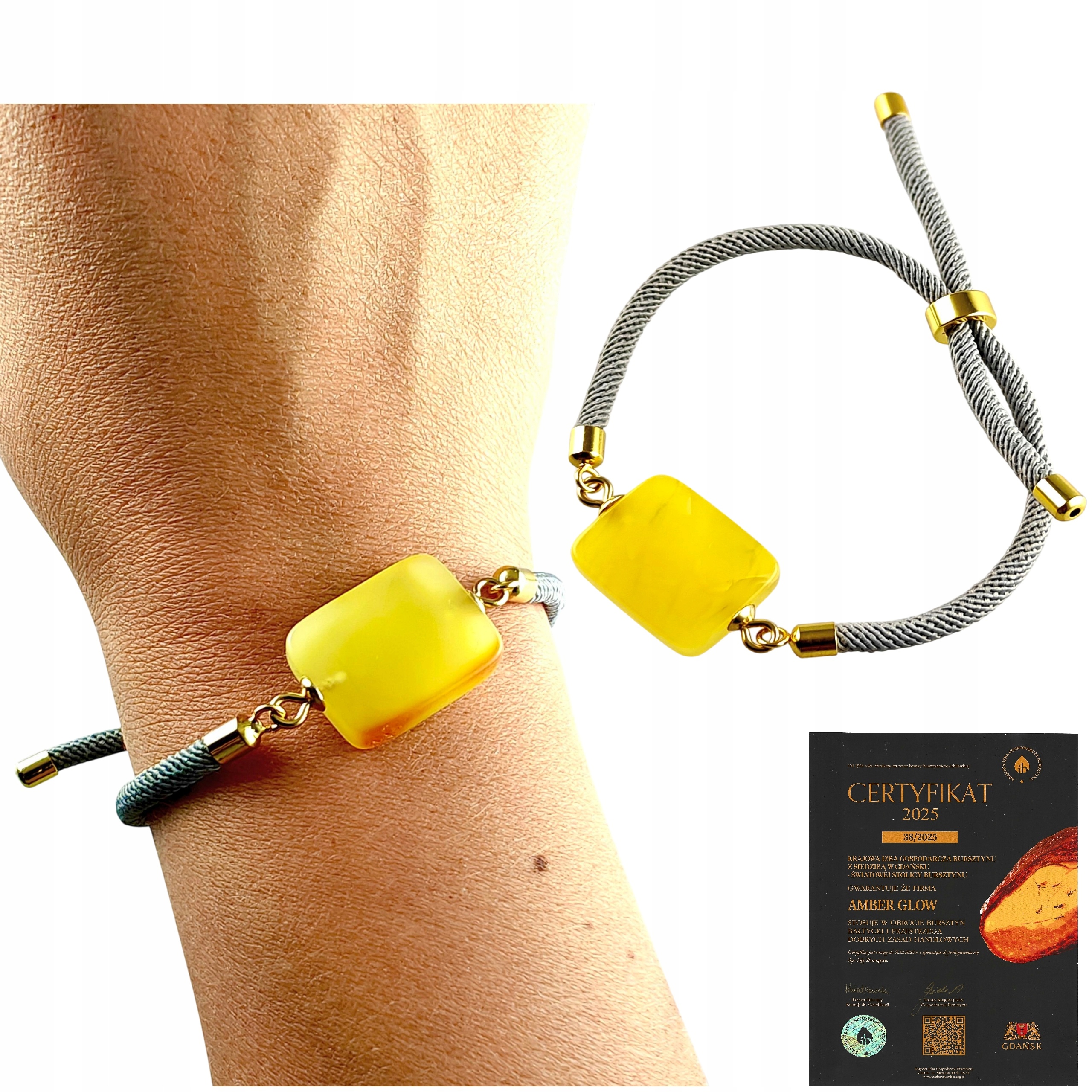 Ta wyjątkowa bransoletka z naturalnym bursztynem to połączenie subtelnej elegancji i głębokiego znaczenia. Centralny element stanowi polerowany bursztyn w ciepłym, mleczno-żółtym odcieniu, który pięknie kontrastuje z klasycznym, szarym sznurkiem i stalowymi wykończeniami w kolorze złotym.