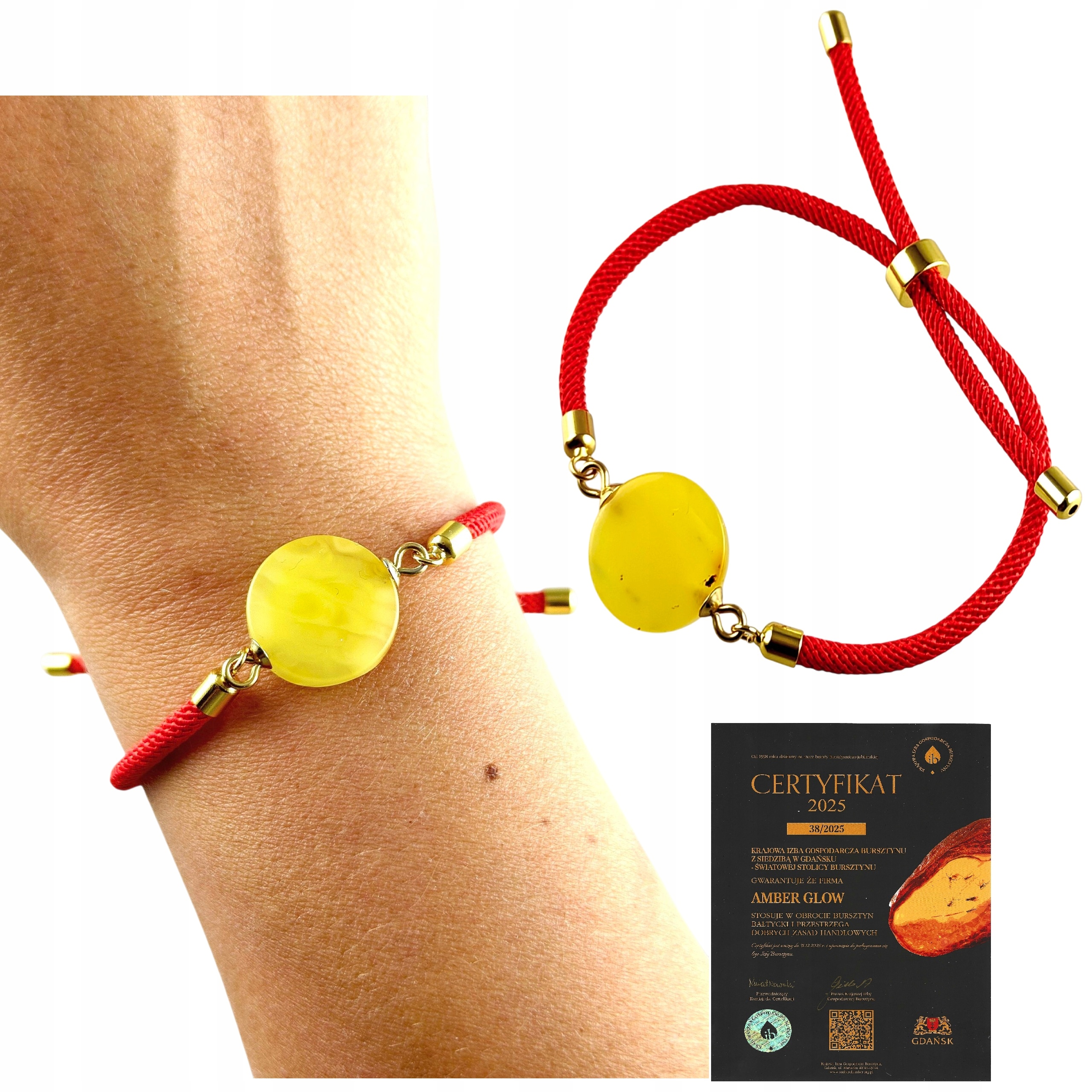 Ta wyjątkowa bransoletka z naturalnym bursztynem to połączenie subtelnej elegancji i głębokiego znaczenia. Centralny element stanowi polerowany bursztyn w ciepłym, mleczno-żółtym odcieniu, który pięknie kontrastuje z klasycznym, czerwonym sznurkiem i stalowymi wykończeniami w kolorze złotym.
