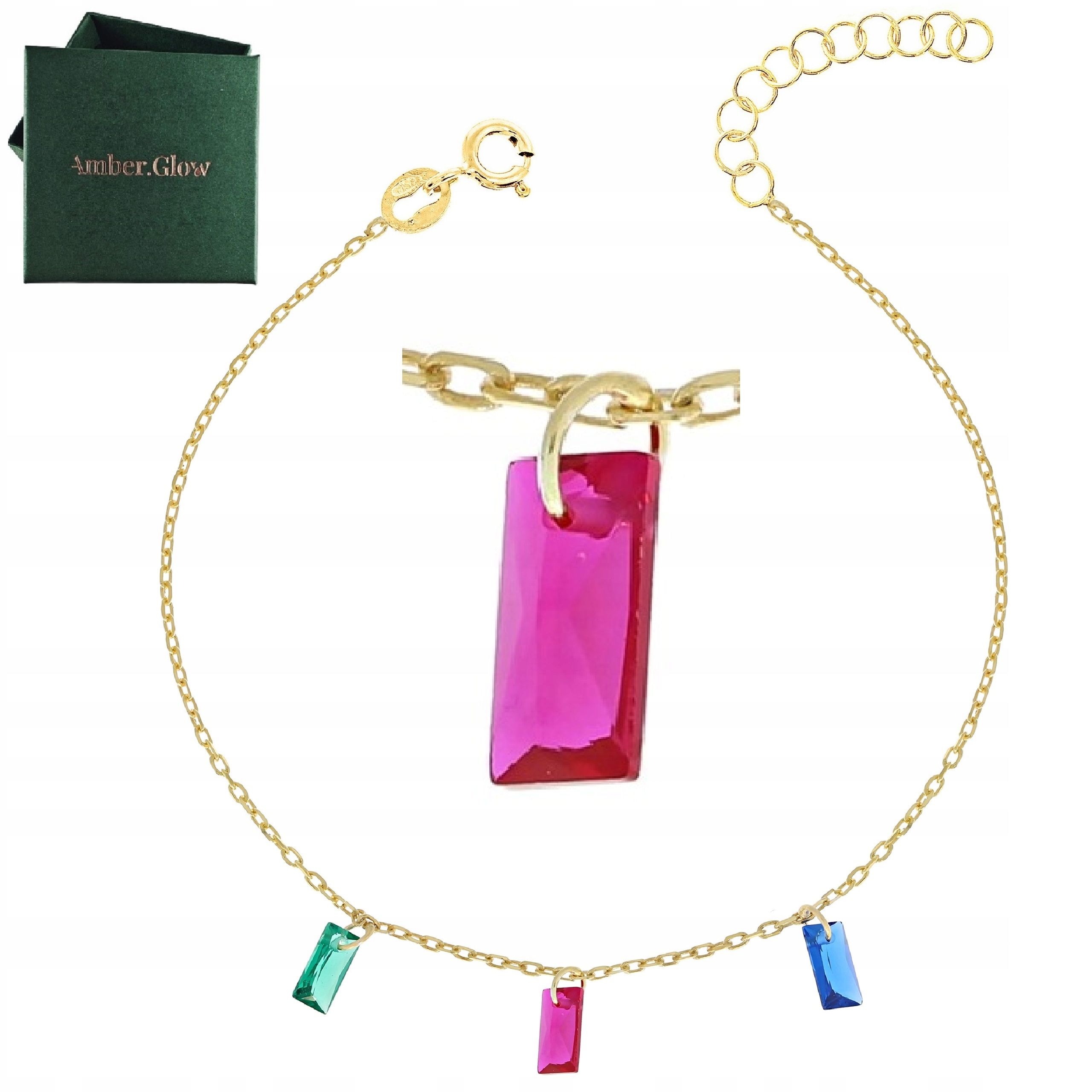 BRANSOLETKA ZŁOTA KOLOROWE CYRKONIE SREBRO POZŁACANE DELIKATNA NA PREZENT