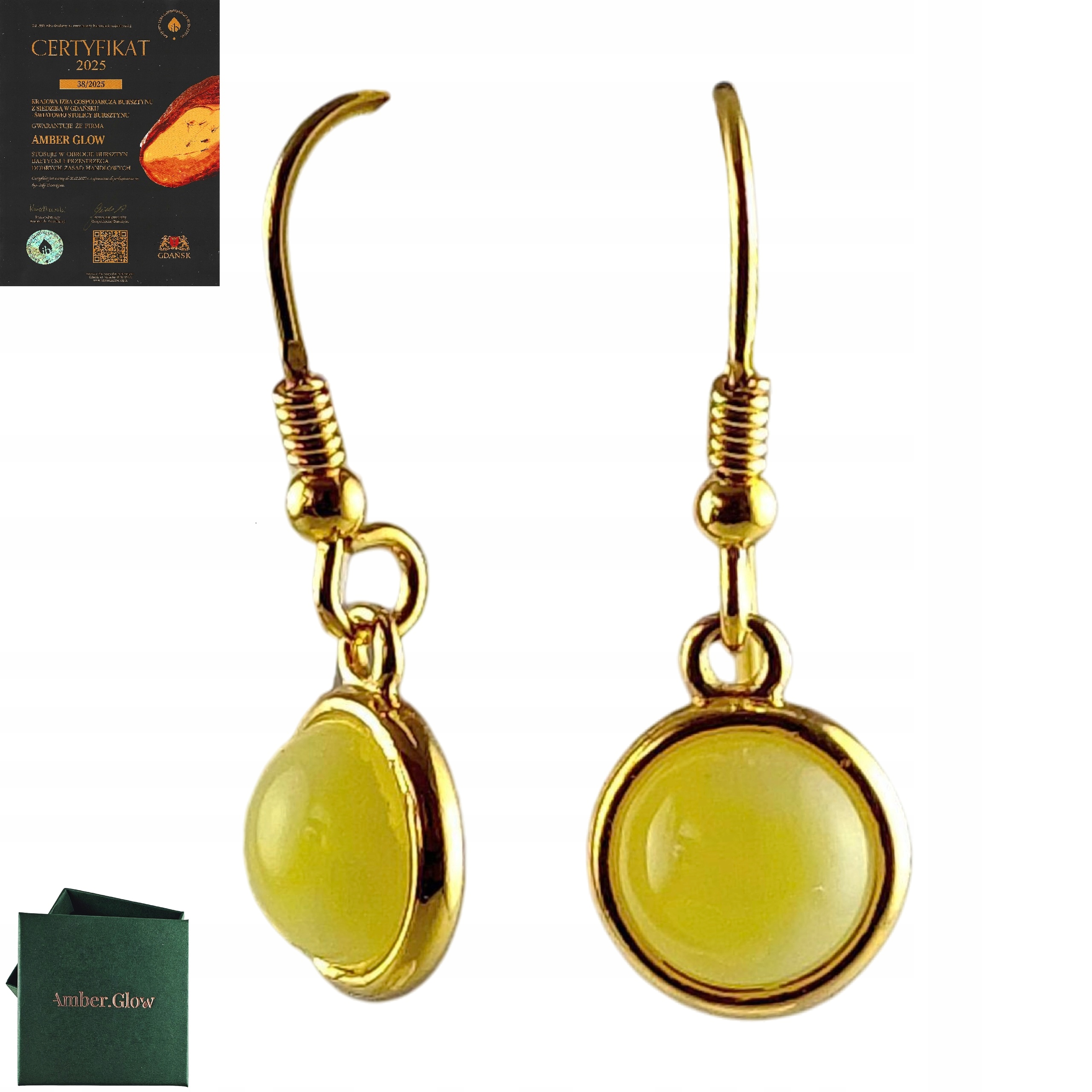 KOLCZYKI ZŁOTE Z CERTYFIKOWANYM BURSZTYNEM OKRAGŁE ŚLICZNE SREBRO POZŁACANE