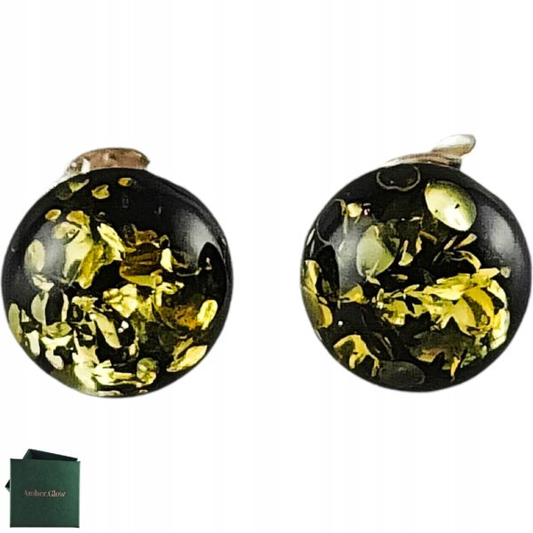 Kolczyki srebrne bursztynowe okrągłe – zielony bursztyn