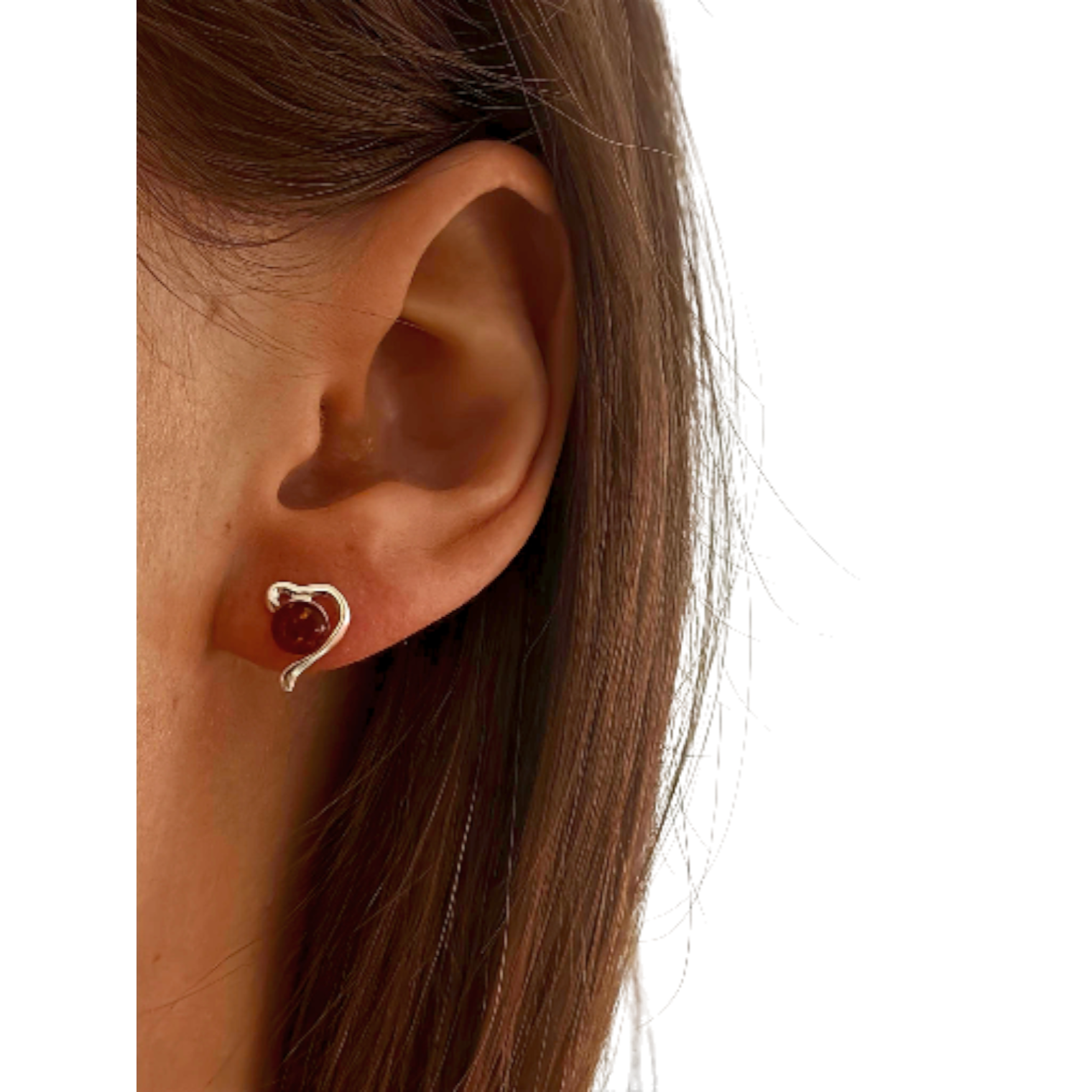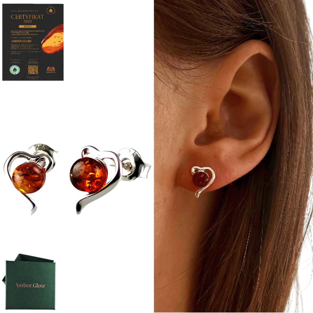 Kolczyki Srebrne z Bursztynem DELIKATNE Serduszka Sztyfty 925 na Prezent
