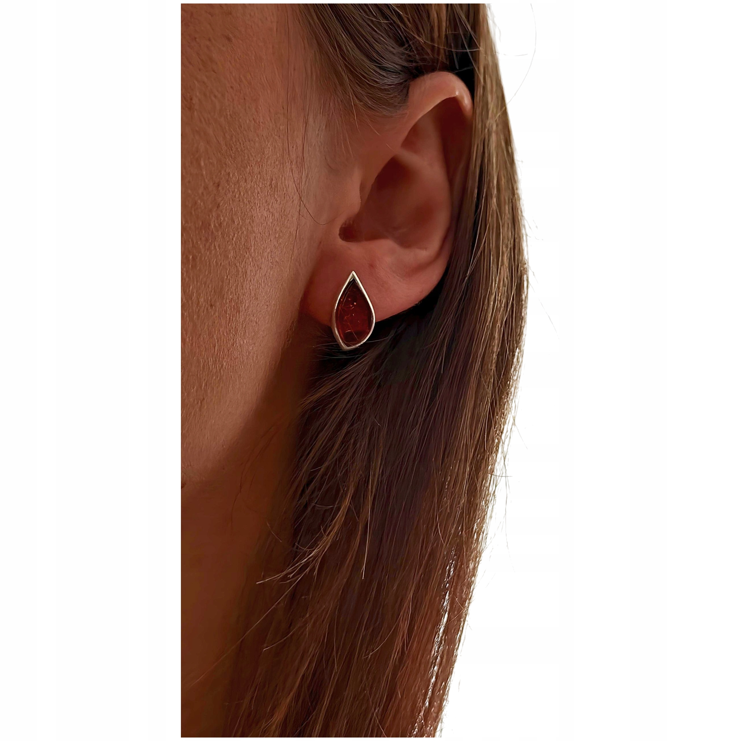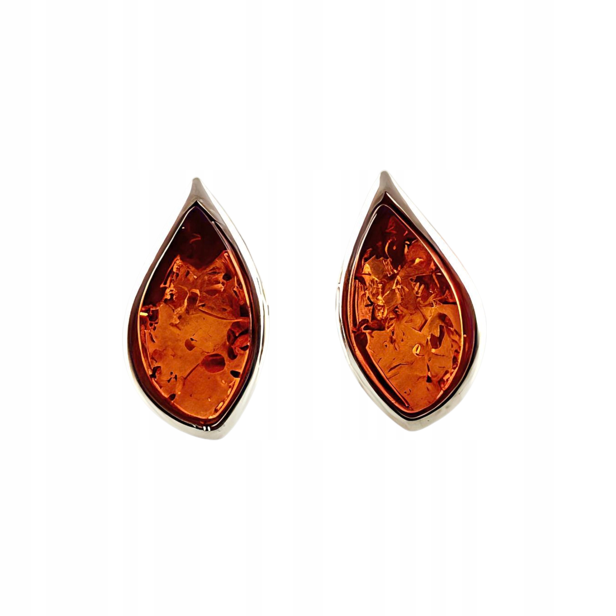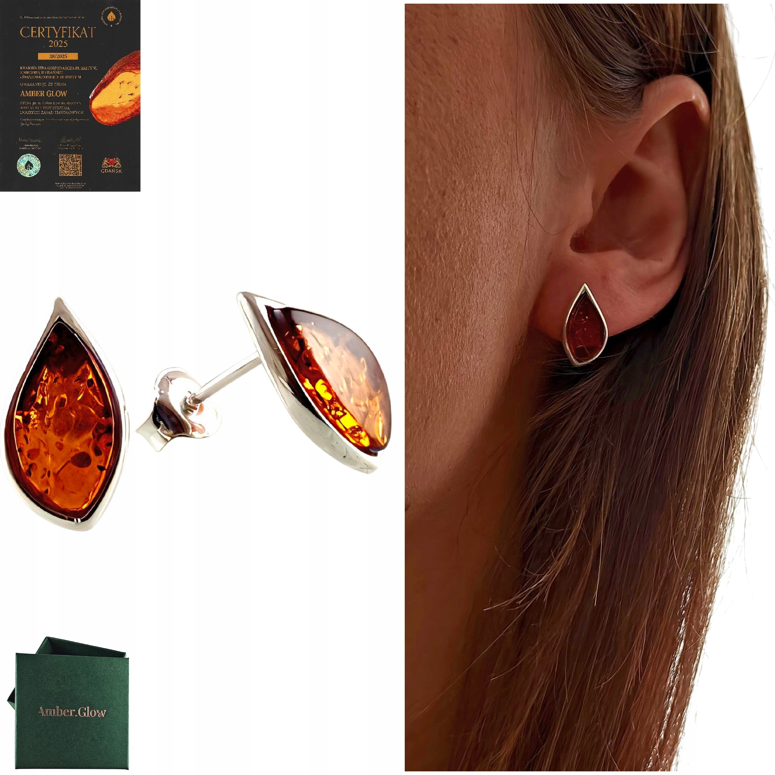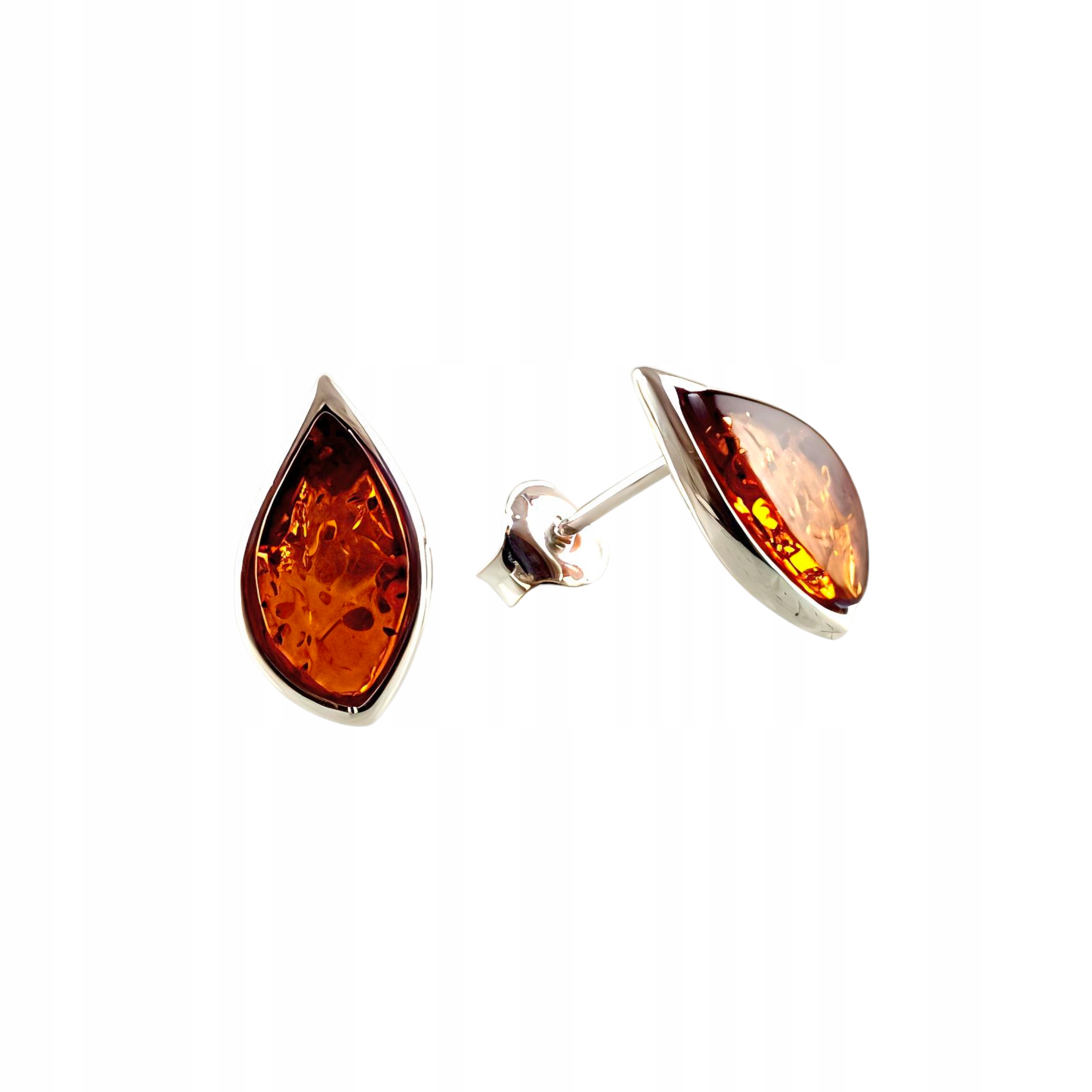 KOLCZYKI SREBRNE 925 Z CERTYFIKOWANYM BURSZTYNEM KLASYCZNE ŚLICZNE Sztyft