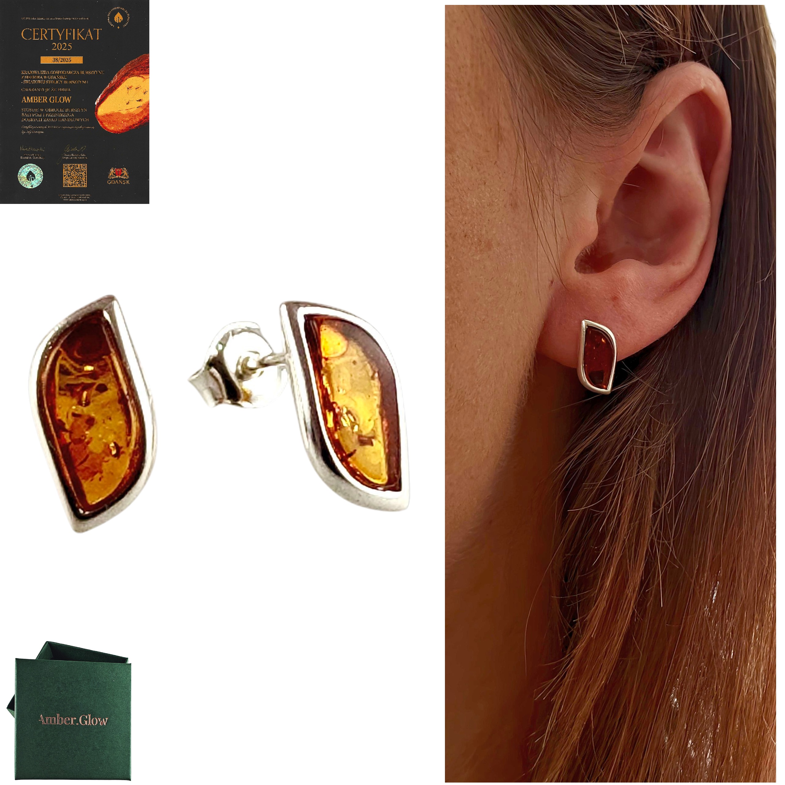 KOLCZYKI SREBRNE z CERTYFIKOWANYM BURSZTYNEM Piękne Klasyczne Sztyft Srebro