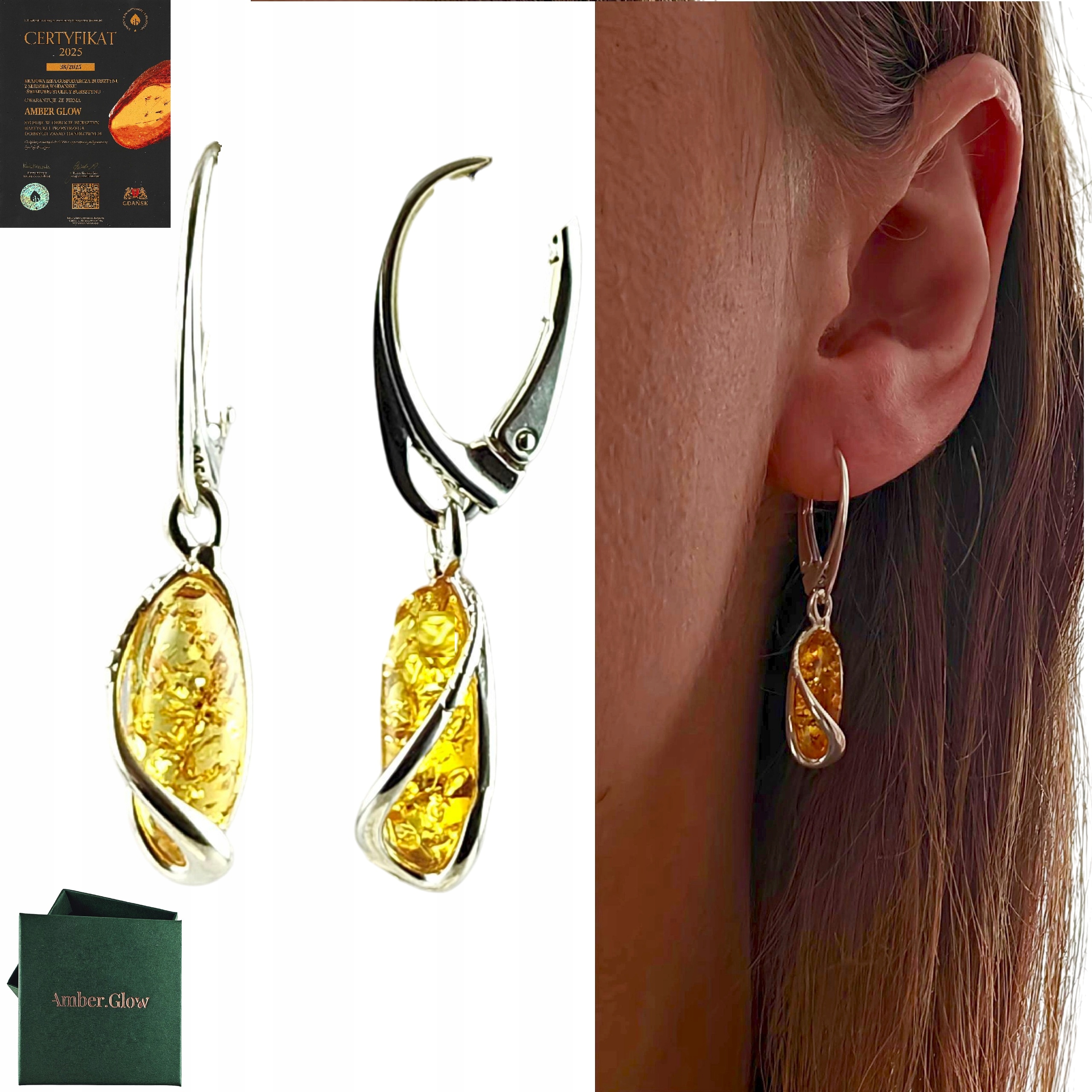 ✅ Kolczyki wykonane są ze srebra próby 925 (każdy nasz produkt ma wybitą próbę 925) oraz prawdziwego bursztynu bałtyckiego
