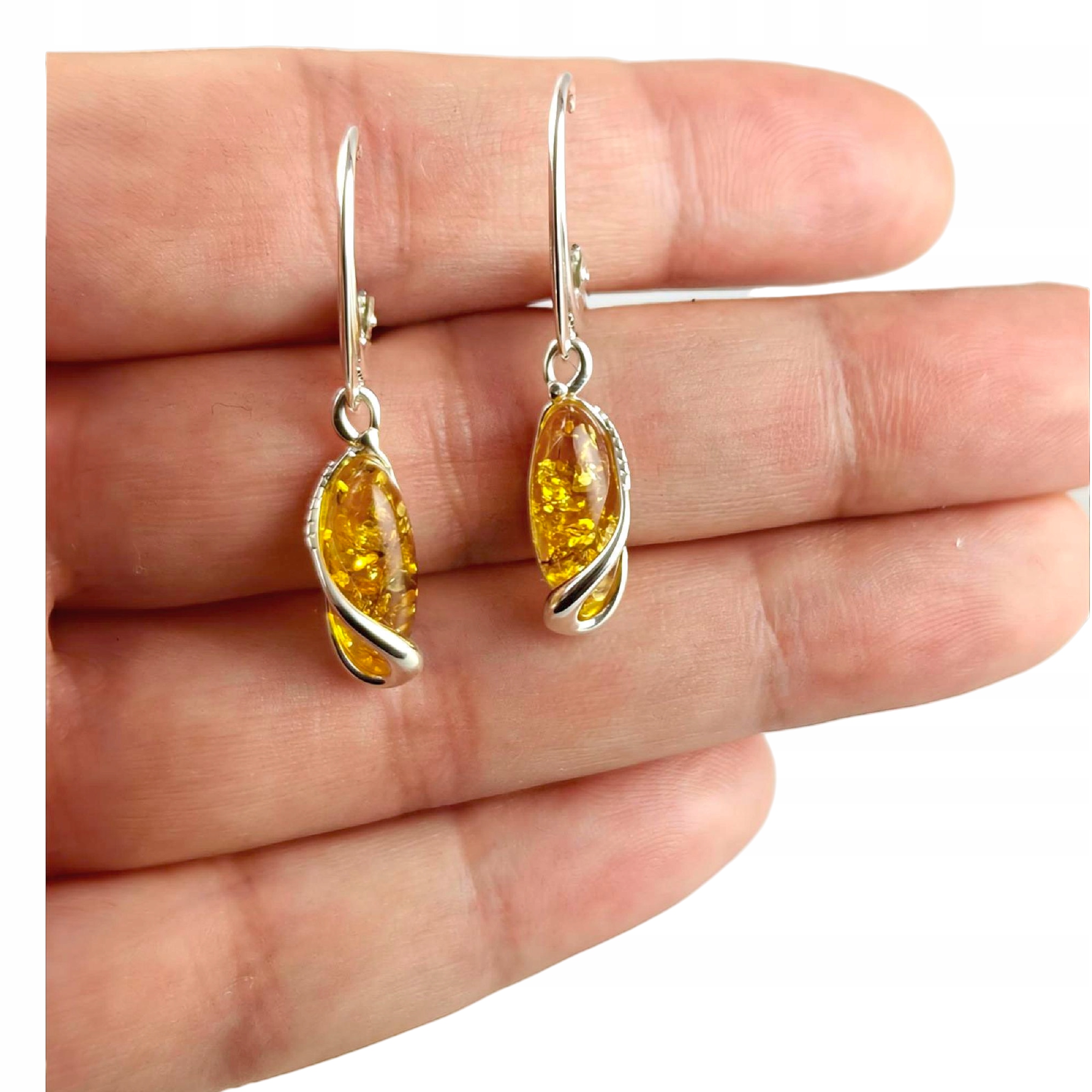 Kolczyki srebrne z bursztynem – wyjątkowe piękne – srebro 925 – zapięcie angielskie