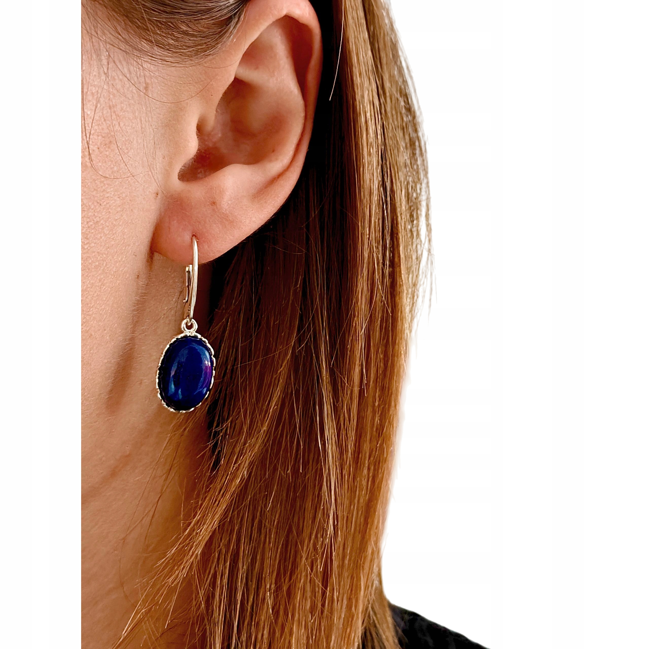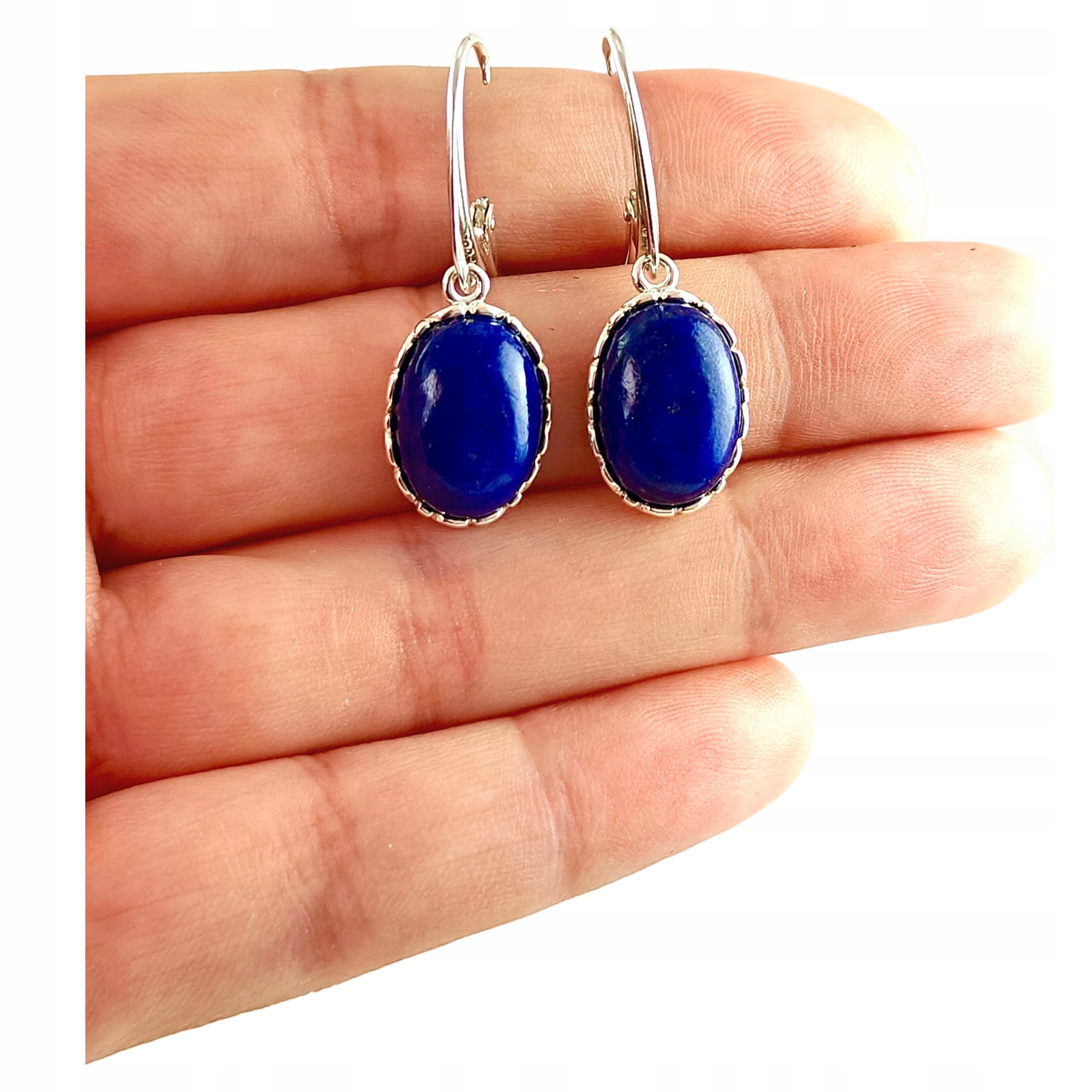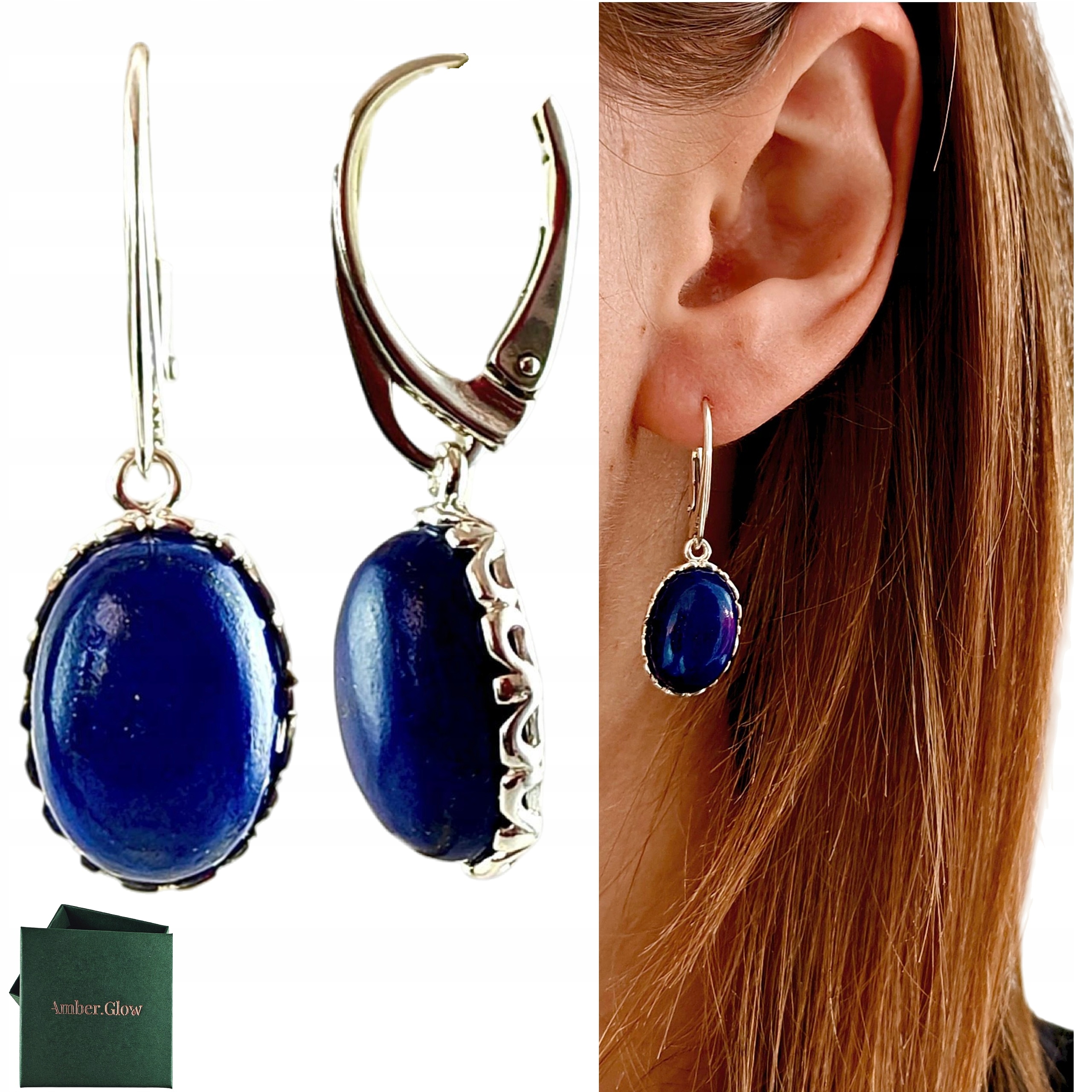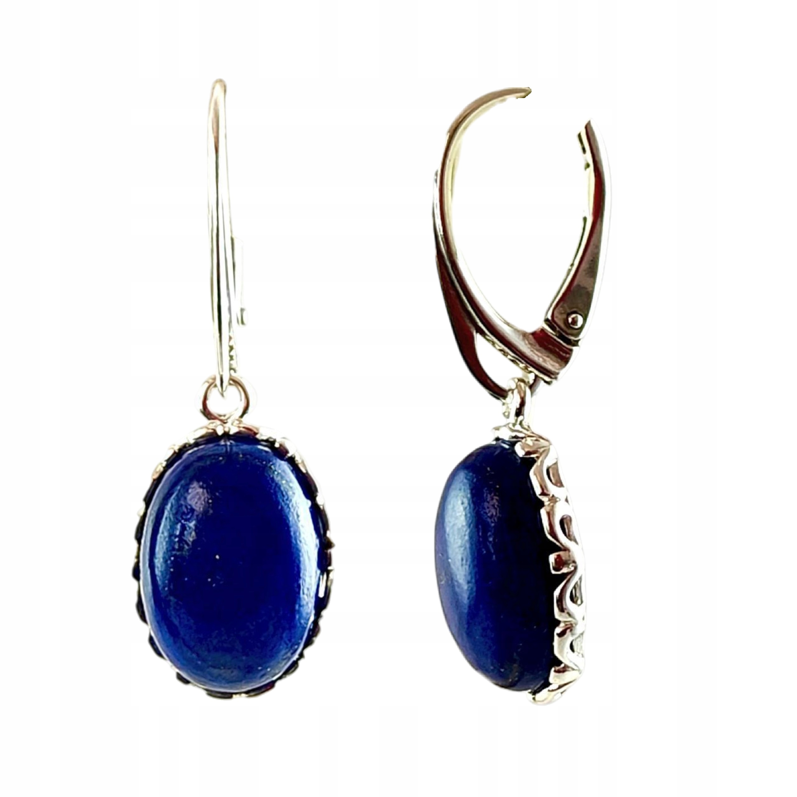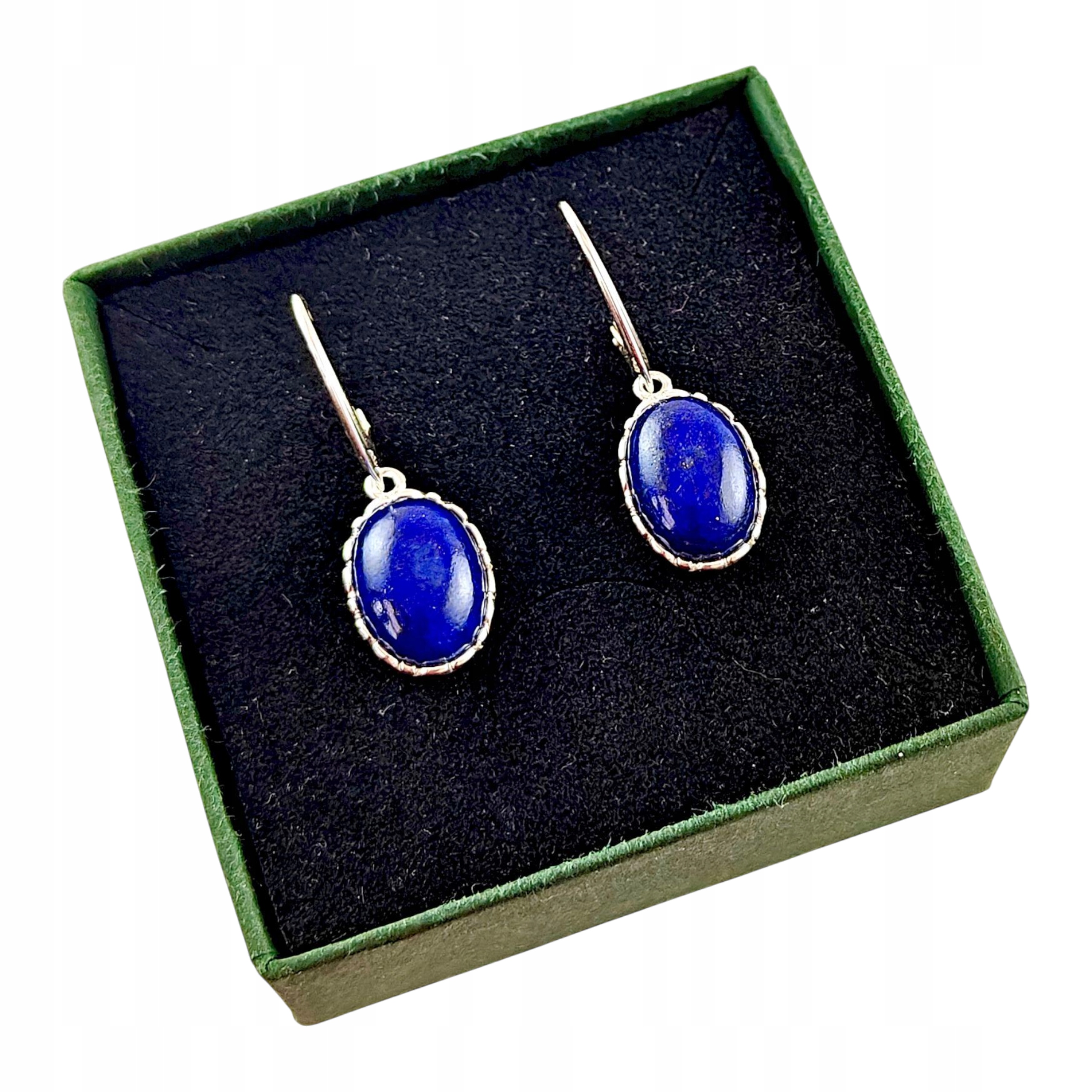 KOLCZYKI SREBRNE z LAPISEM DELIKATNE PIĘKNE WISZĄCE ZAPIĘCIE ANGIELSKIE