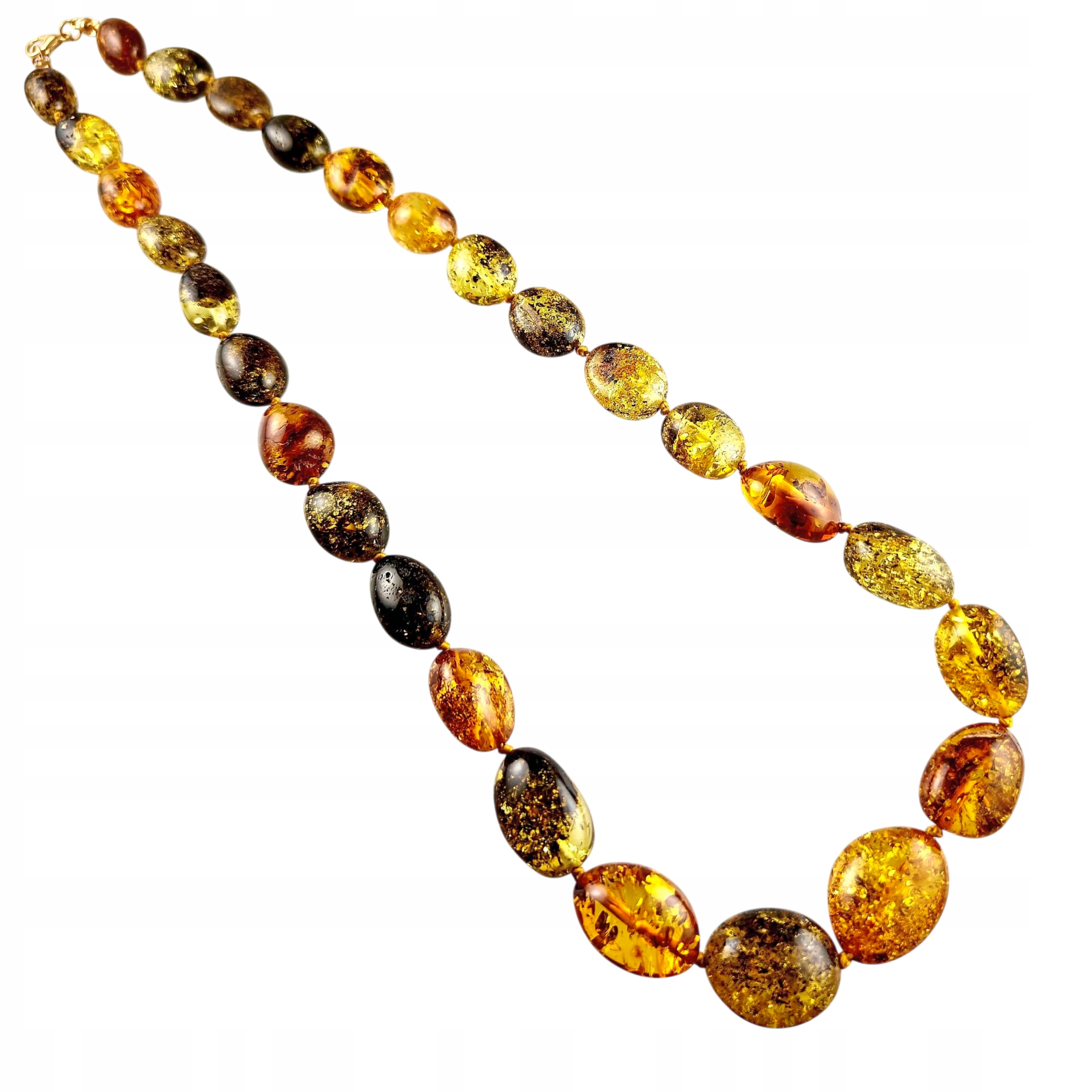 Ten elegancki naszyjnik z naturalnego bursztynu bałtyckiego to propozycja dla osób ceniących ponadczasową biżuterię z duszą. Wykonany z wysokiej jakości, ręcznie szlifowanych koralików bursztynu w głębokim zielonym i miodowym odcieniu, zachwyca swoją barwą, naturalnym blaskiem i niepowtarzalnym charakterem.