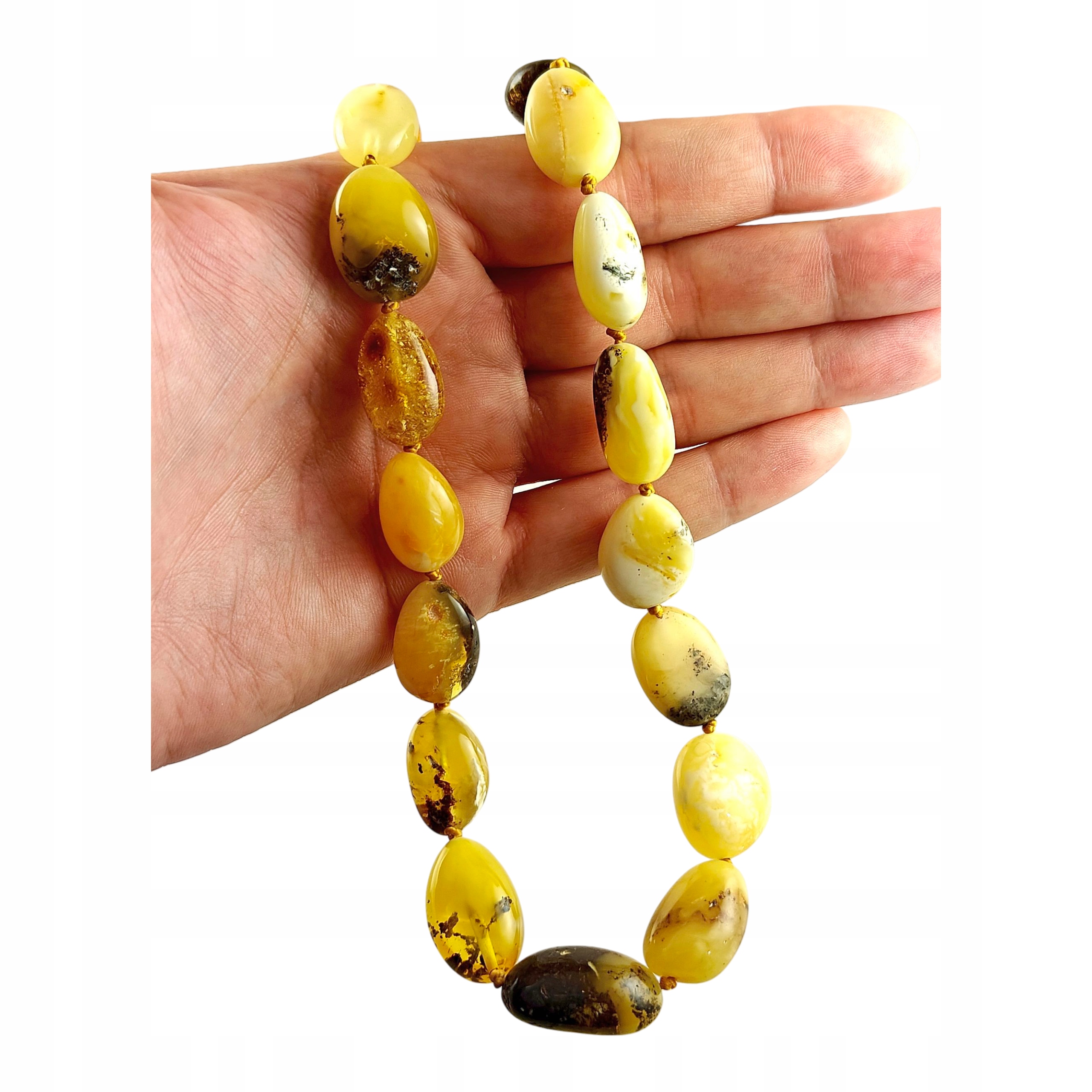 Każdy koralik to unikalny fragment natury – zawiera drobne inkluzje i struktury świadczące o jego autentycznym pochodzeniu. Naszyjnik pięknie układa się na szyi, dodając elegancji zarówno codziennym, jak i wieczorowym stylizacjom.