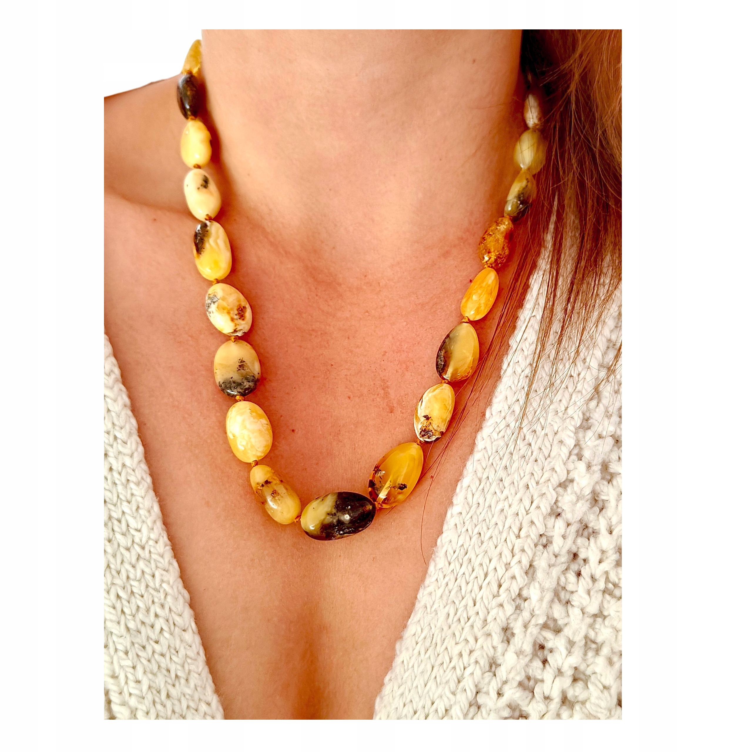 Ten elegancki naszyjnik z naturalnego bursztynu bałtyckiego to propozycja dla osób ceniących ponadczasową biżuterię z duszą. Wykonany z wysokiej jakości, ręcznie szlifowanych koralików bursztynu, zachwyca swoją barwą, naturalnym blaskiem i niepowtarzalnym charakterem.