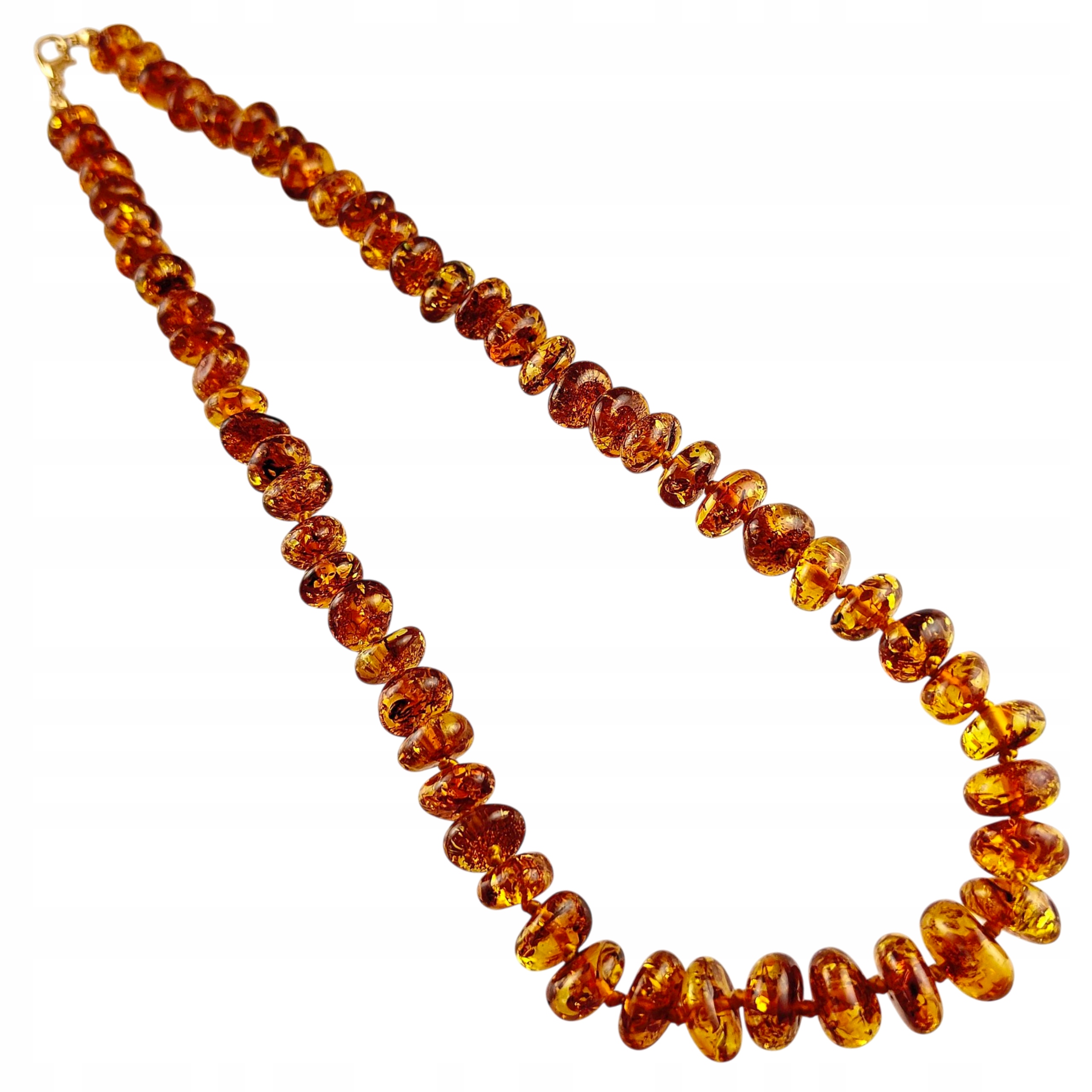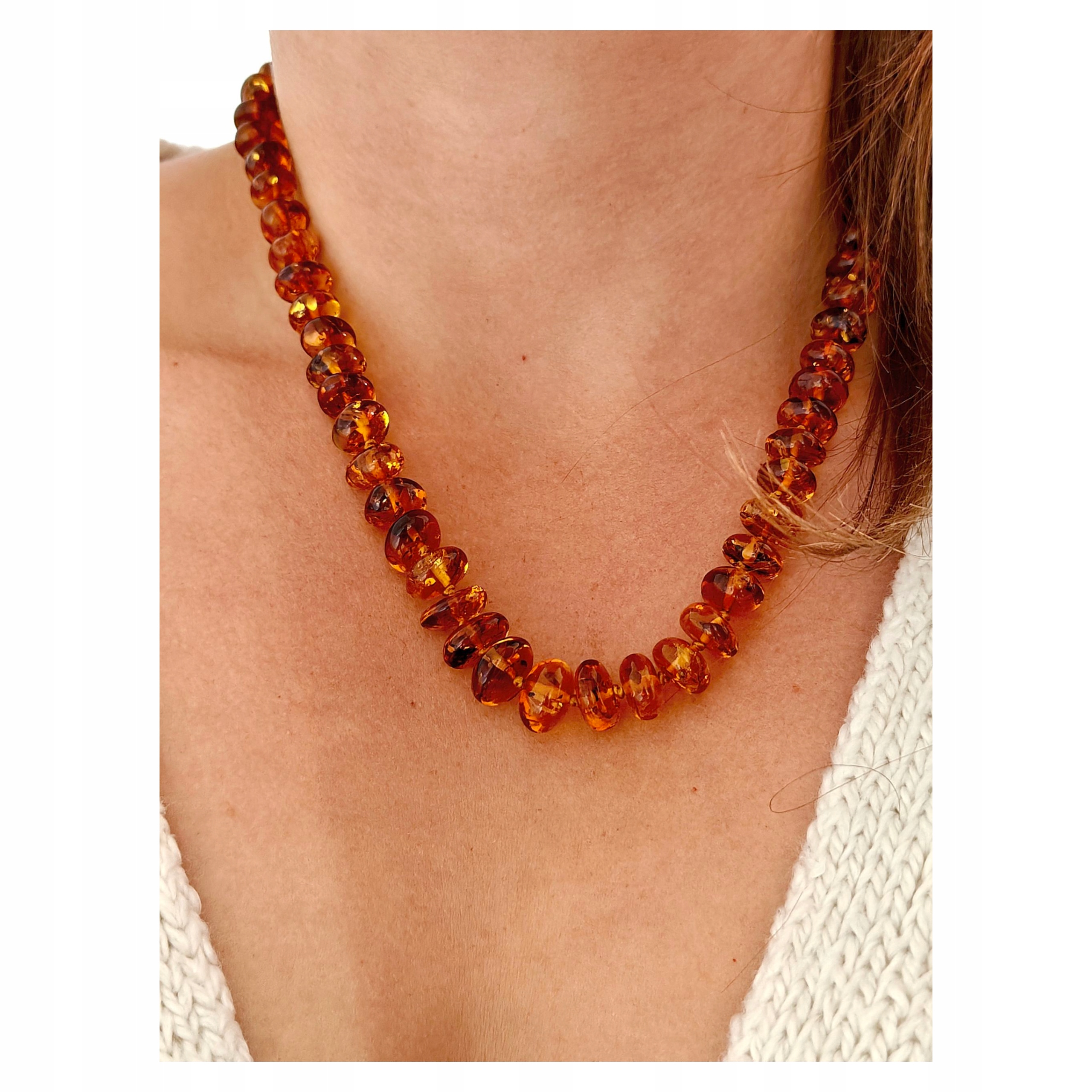 Ten elegancki naszyjnik z naturalnego bursztynu bałtyckiego to propozycja dla osób ceniących ponadczasową biżuterię z duszą. Wykonany z wysokiej jakości, ręcznie szlifowanych koralików bursztynu w głębokim koniakowym odcieniu, zachwyca swoją ciepłą barwą, naturalnym blaskiem i niepowtarzalnym charakterem.