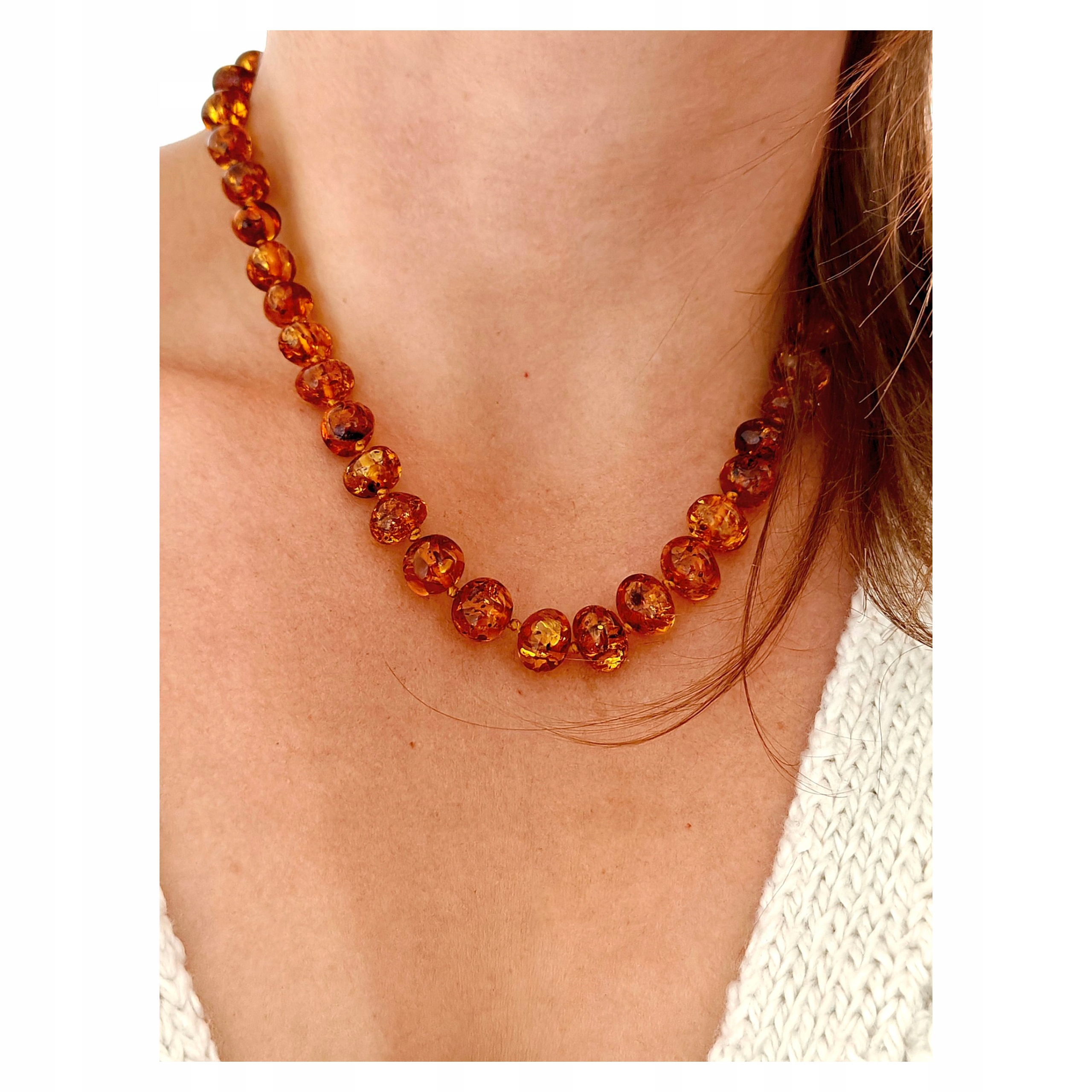 Ten elegancki naszyjnik z naturalnego bursztynu bałtyckiego to propozycja dla osób ceniących ponadczasową biżuterię z duszą. Wykonany z wysokiej jakości, ręcznie szlifowanych koralików bursztynu w głębokim koniakowym odcieniu, zachwyca swoją ciepłą barwą, naturalnym blaskiem i niepowtarzalnym charakterem.
