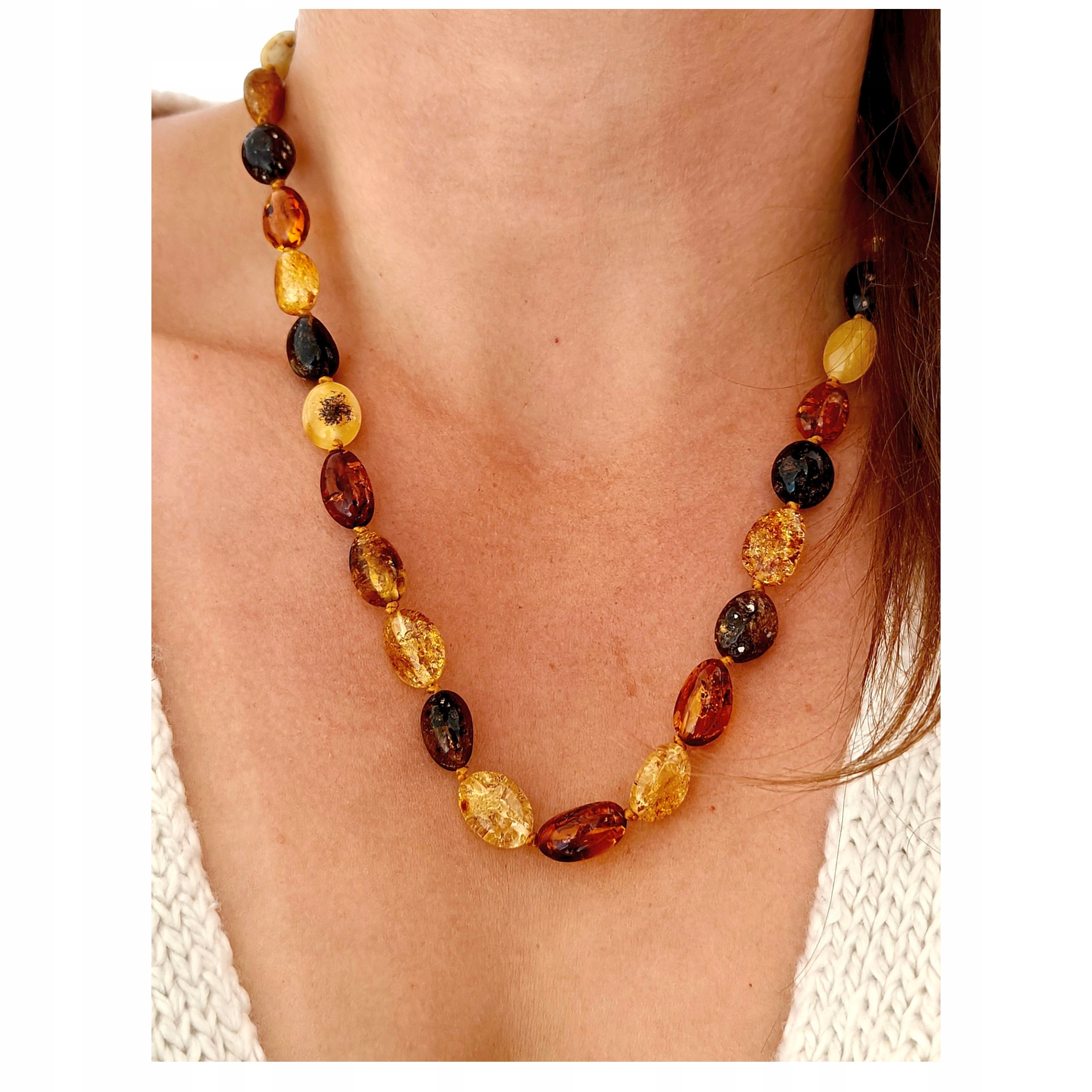 Każdy koralik to unikalny fragment natury – zawiera drobne inkluzje i struktury świadczące o jego autentycznym pochodzeniu. Naszyjnik pięknie układa się na szyi, dodając elegancji zarówno codziennym, jak i wieczorowym stylizacjom.