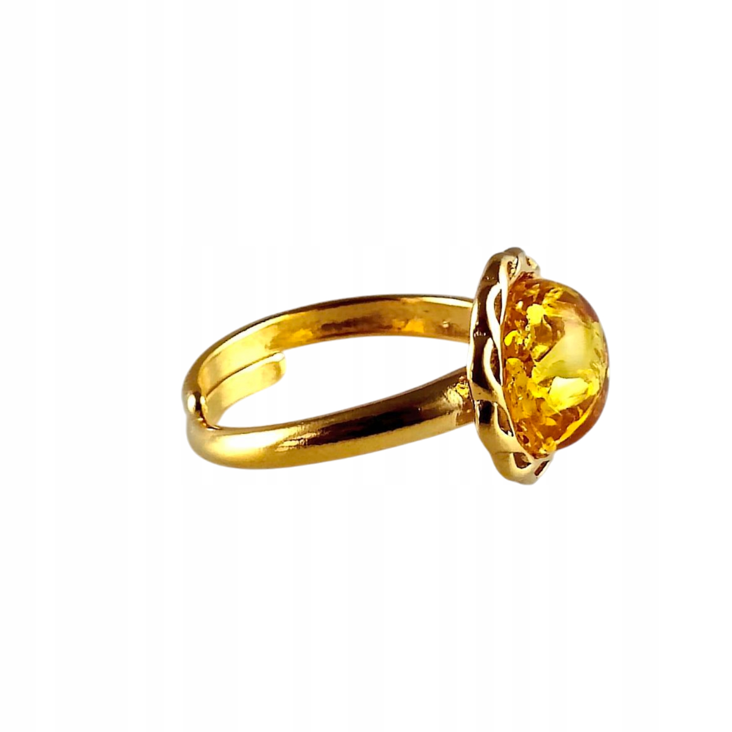 PIERŚCIONEK ZŁOTY MODNY z Bursztynem SREBRO 925 Pozłacane Regulowany PIĘKNY