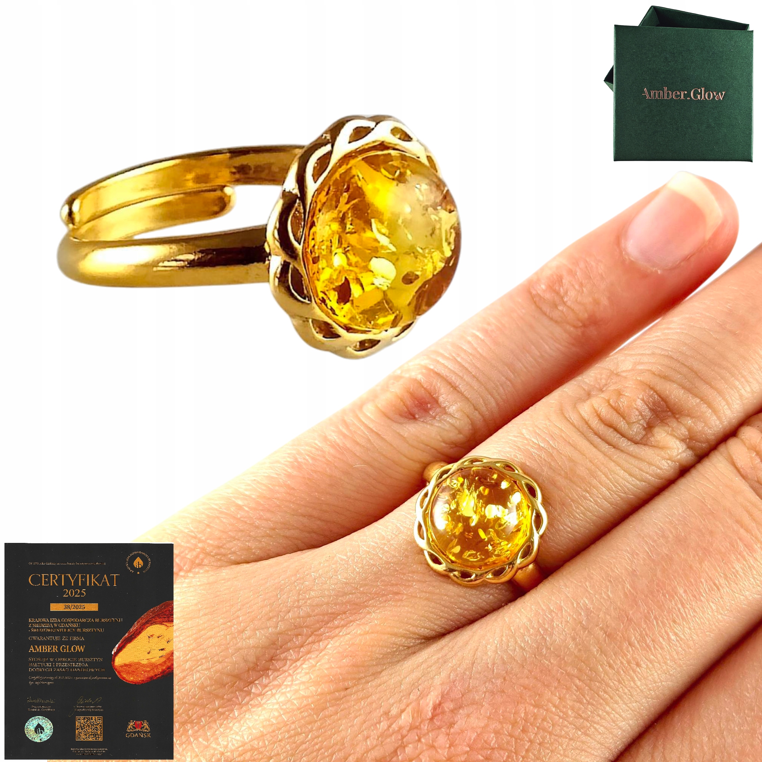 Napisz pierwszą opinię o „PIERŚCIONEK ZŁOTY MODNY z Bursztynem SREBRO 925 Pozłacane Regulowany PIĘKNY”