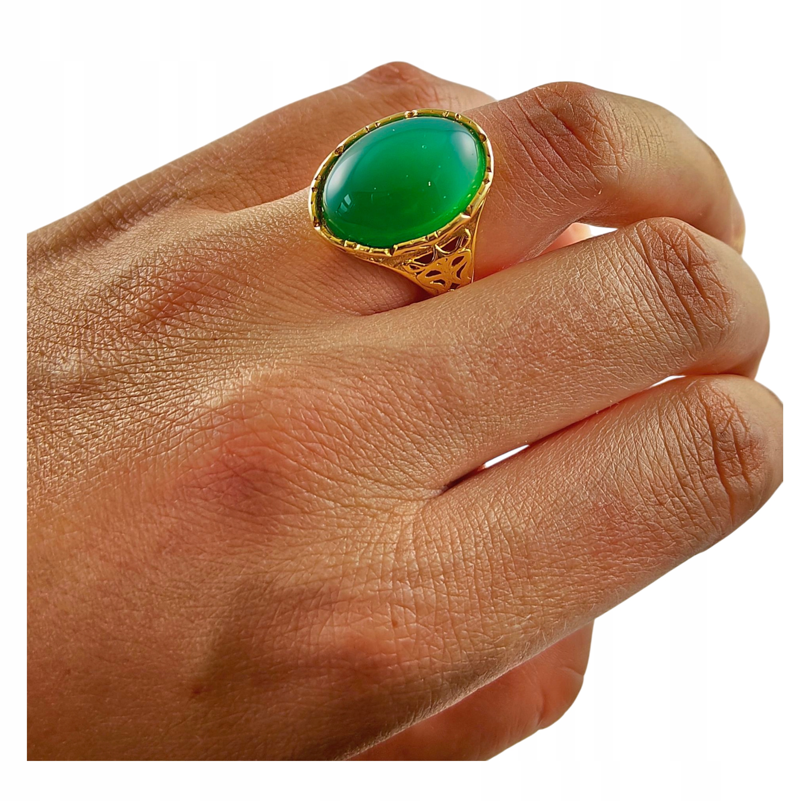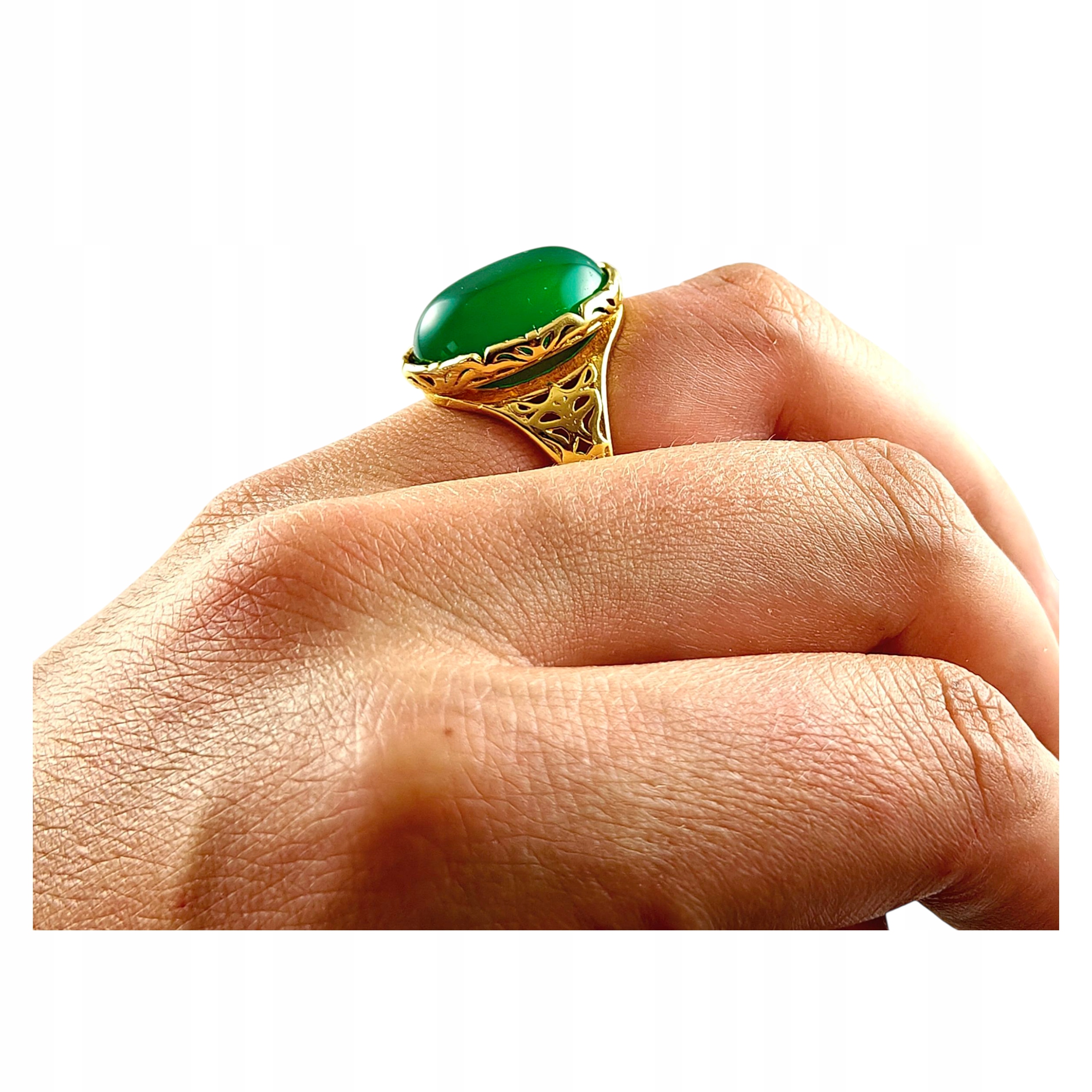 ZŁOTY PIERŚCIONEK Regulowany z AGATEM PIĘKNY ELEGANCKI SREBRO Pozłacane