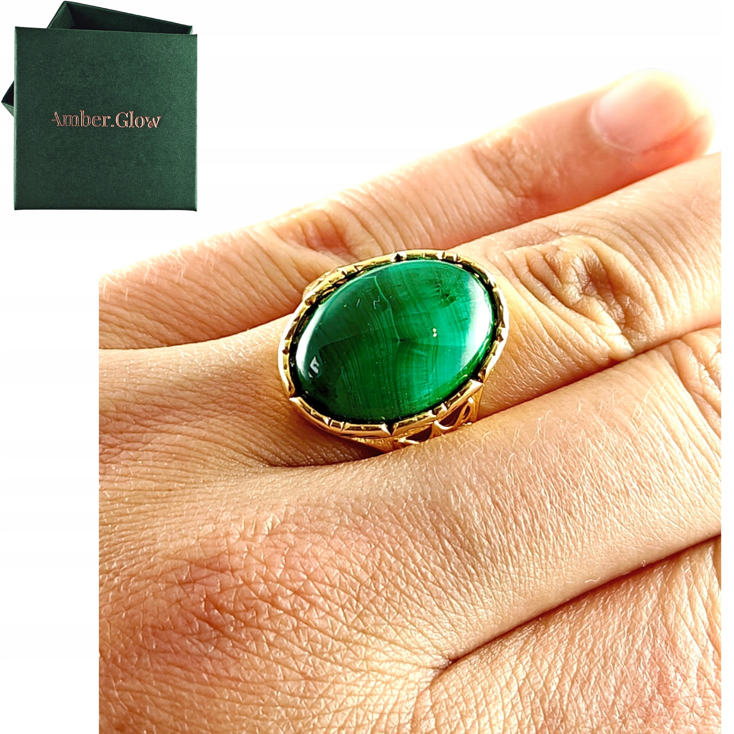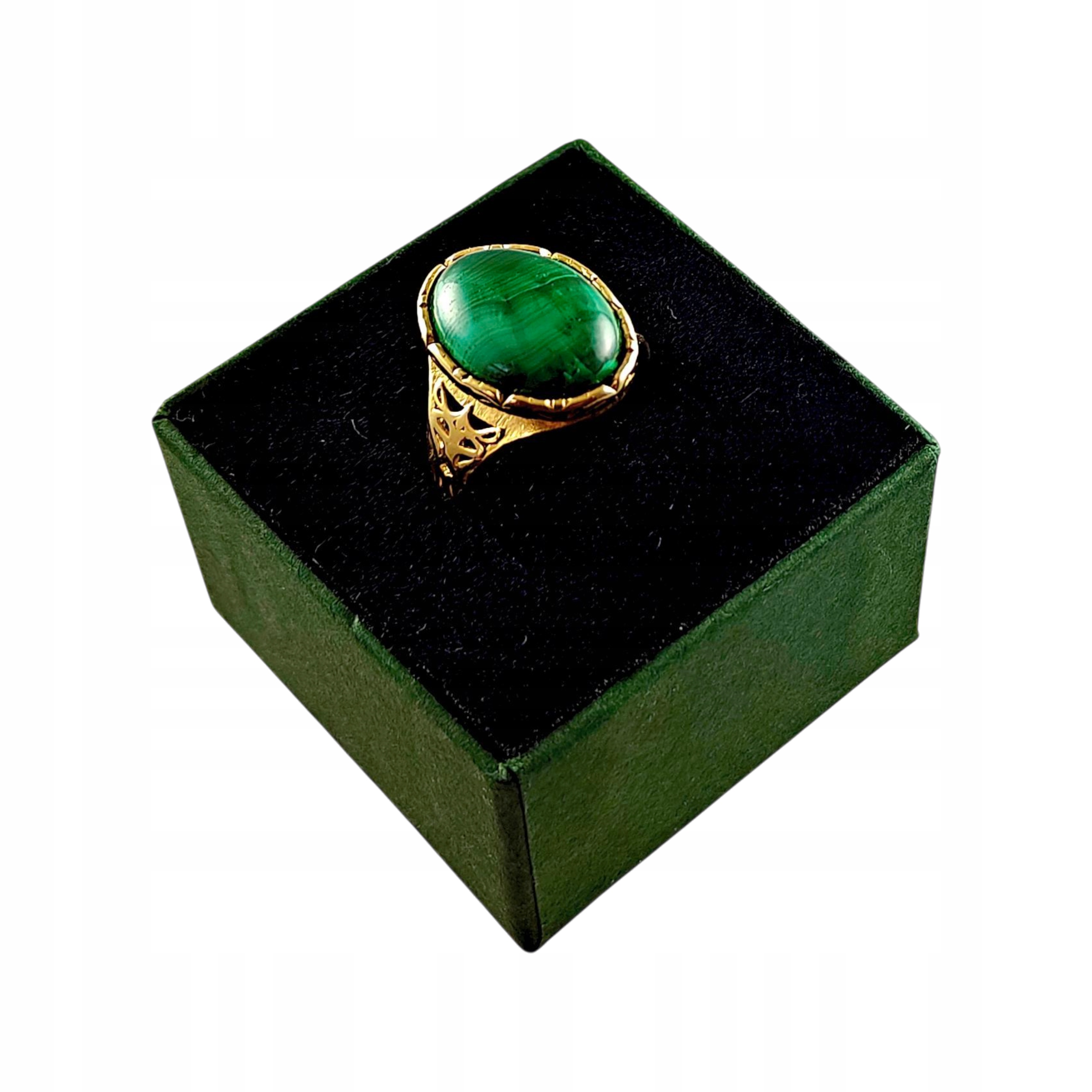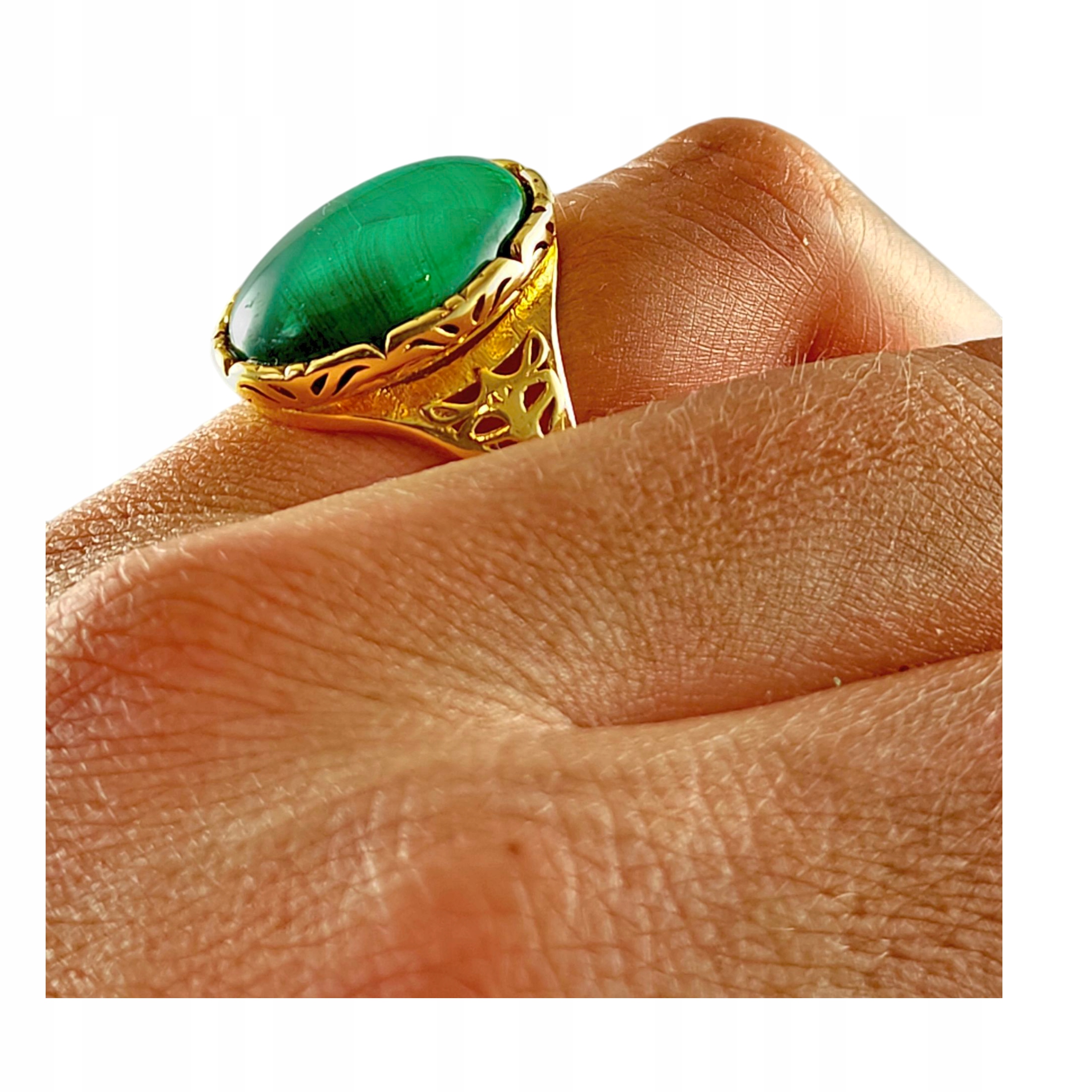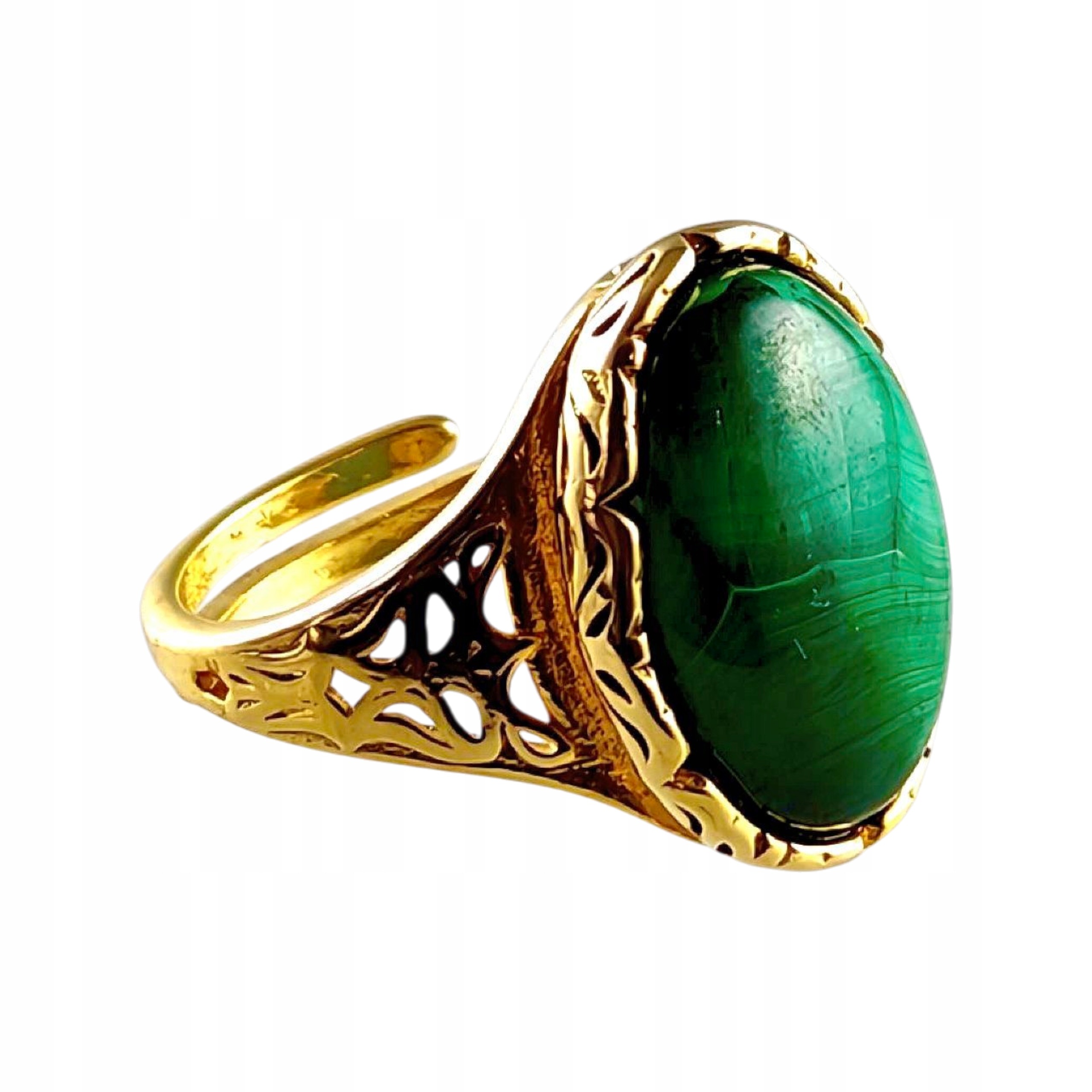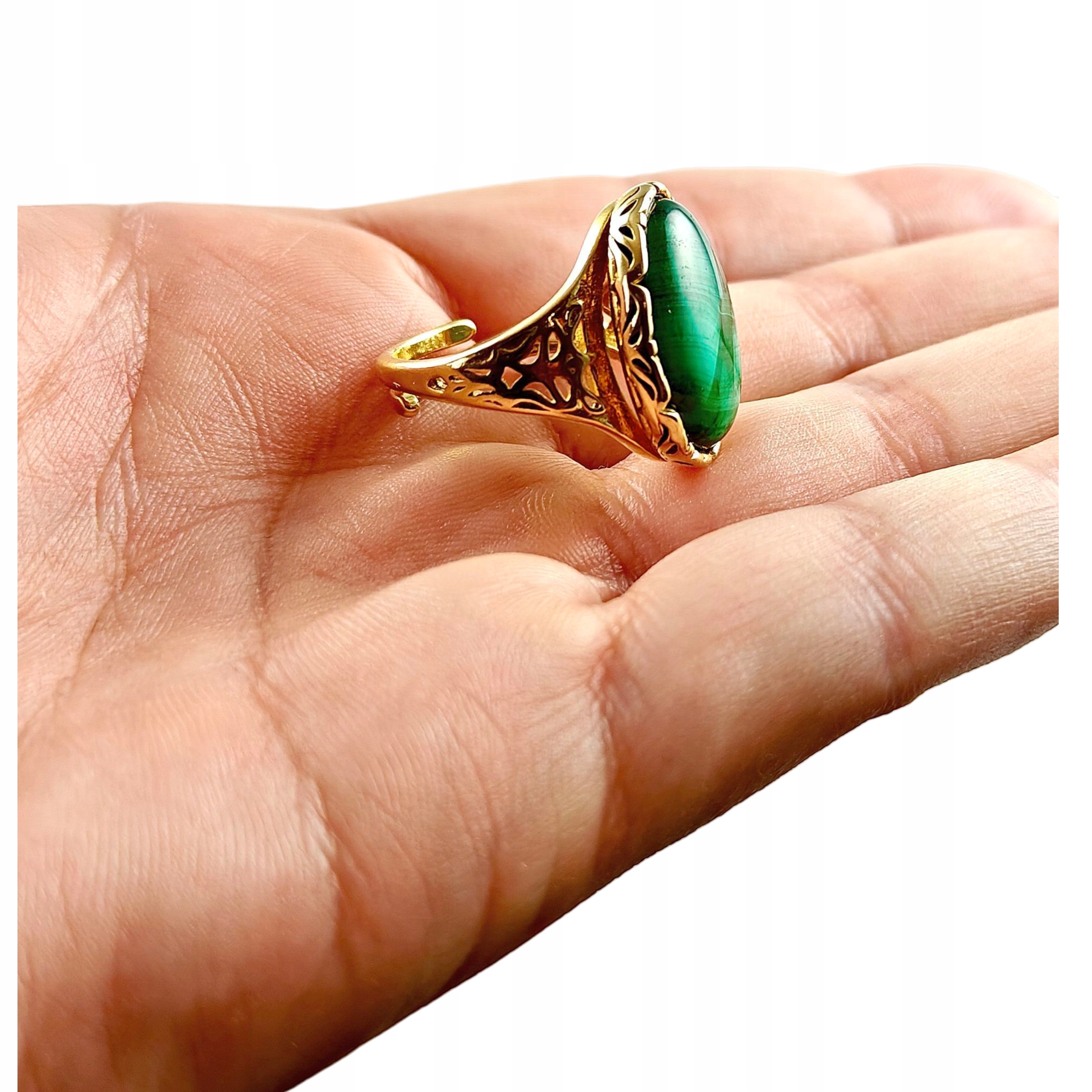 ZŁOTY PIERŚCIONEK Regulowany z MALACHITEM PIĘKNY ELEGANCKI SREBRO Pozłacane
