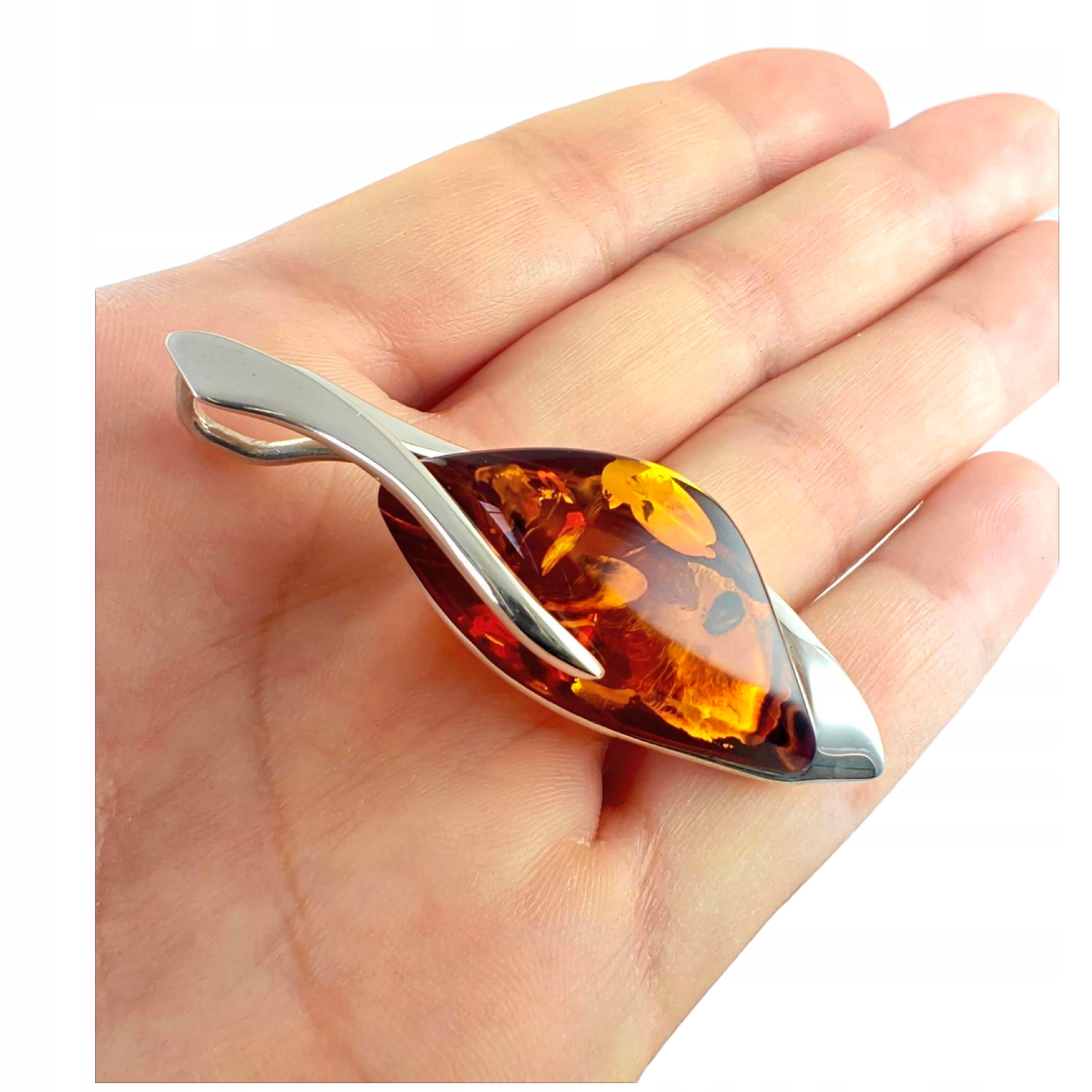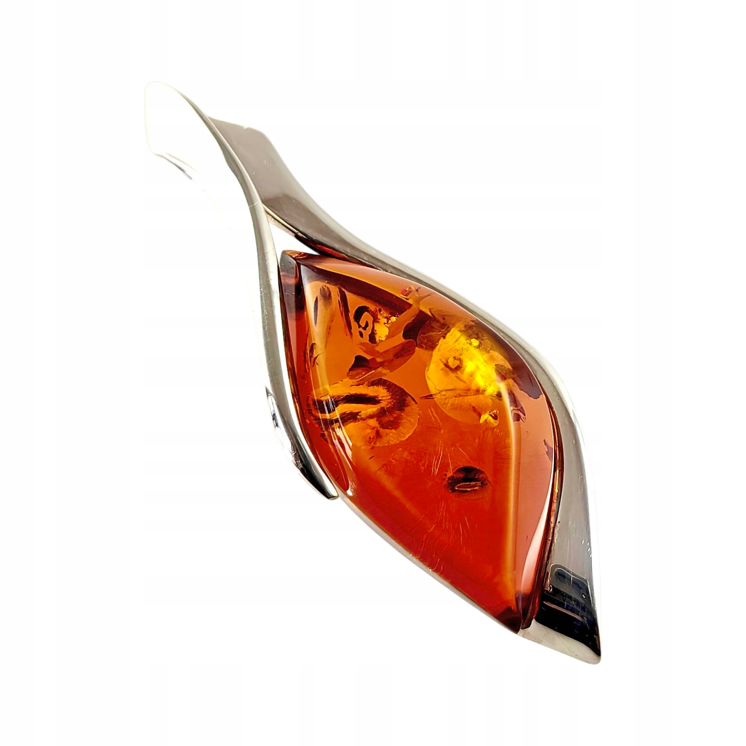Niepowtarzalny wisiorek srebrny z dużym koniakowym bursztynem – unikat – Srebro 925