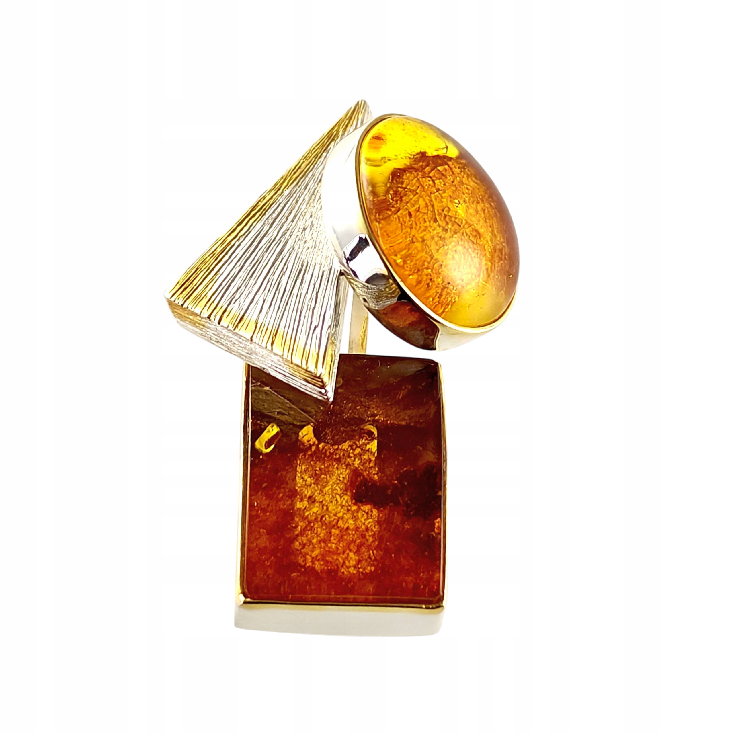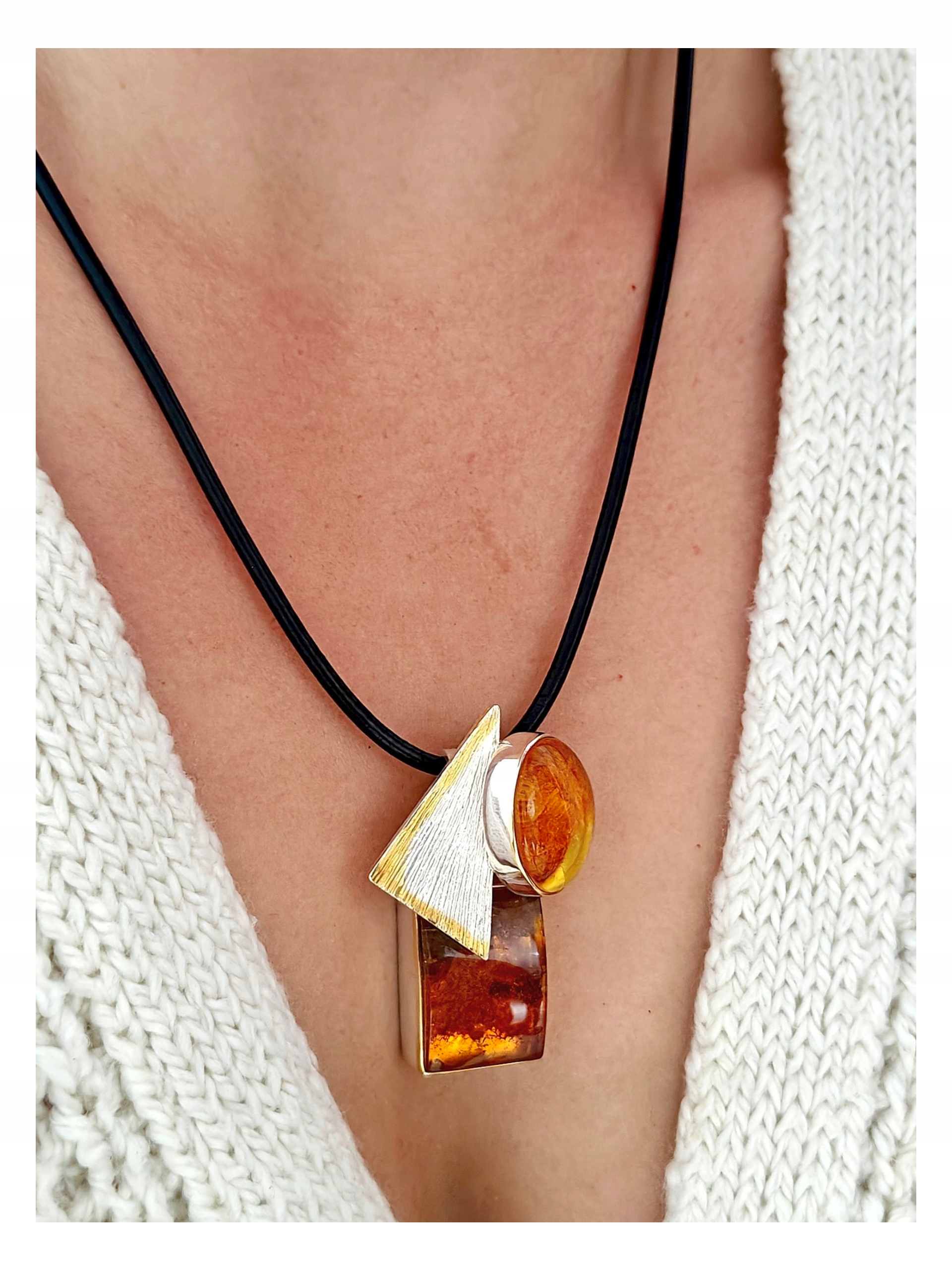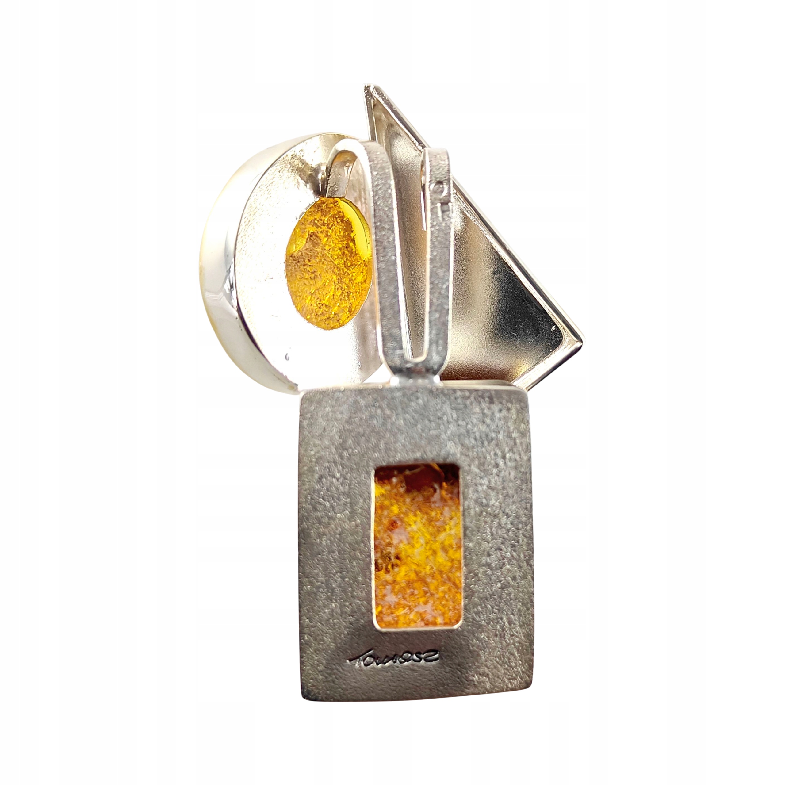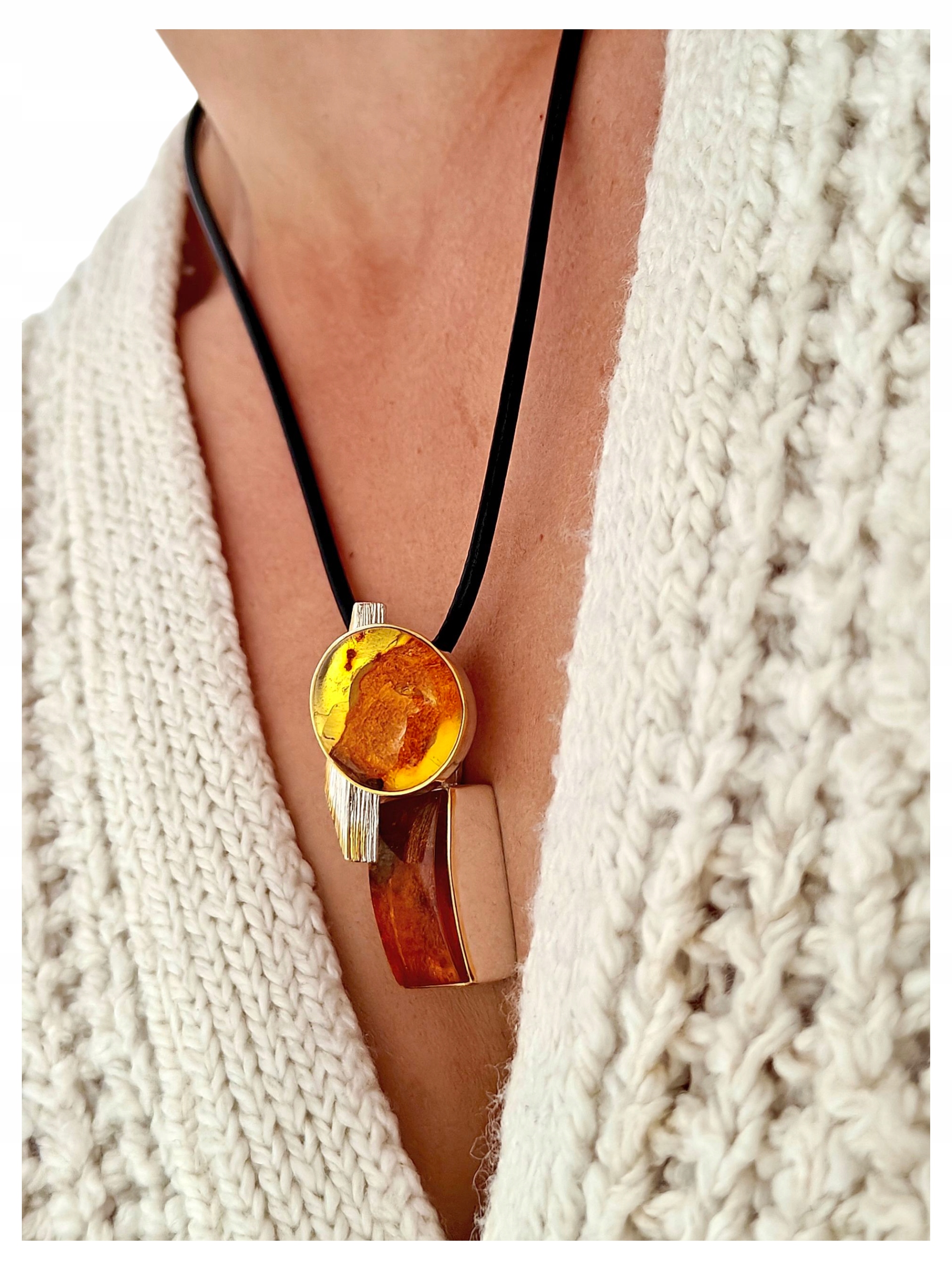 Niepowtarzalny wisiorek srebrny z dużym koniakowym oraz cytrynowym bursztynem – unikat – Srebro 925