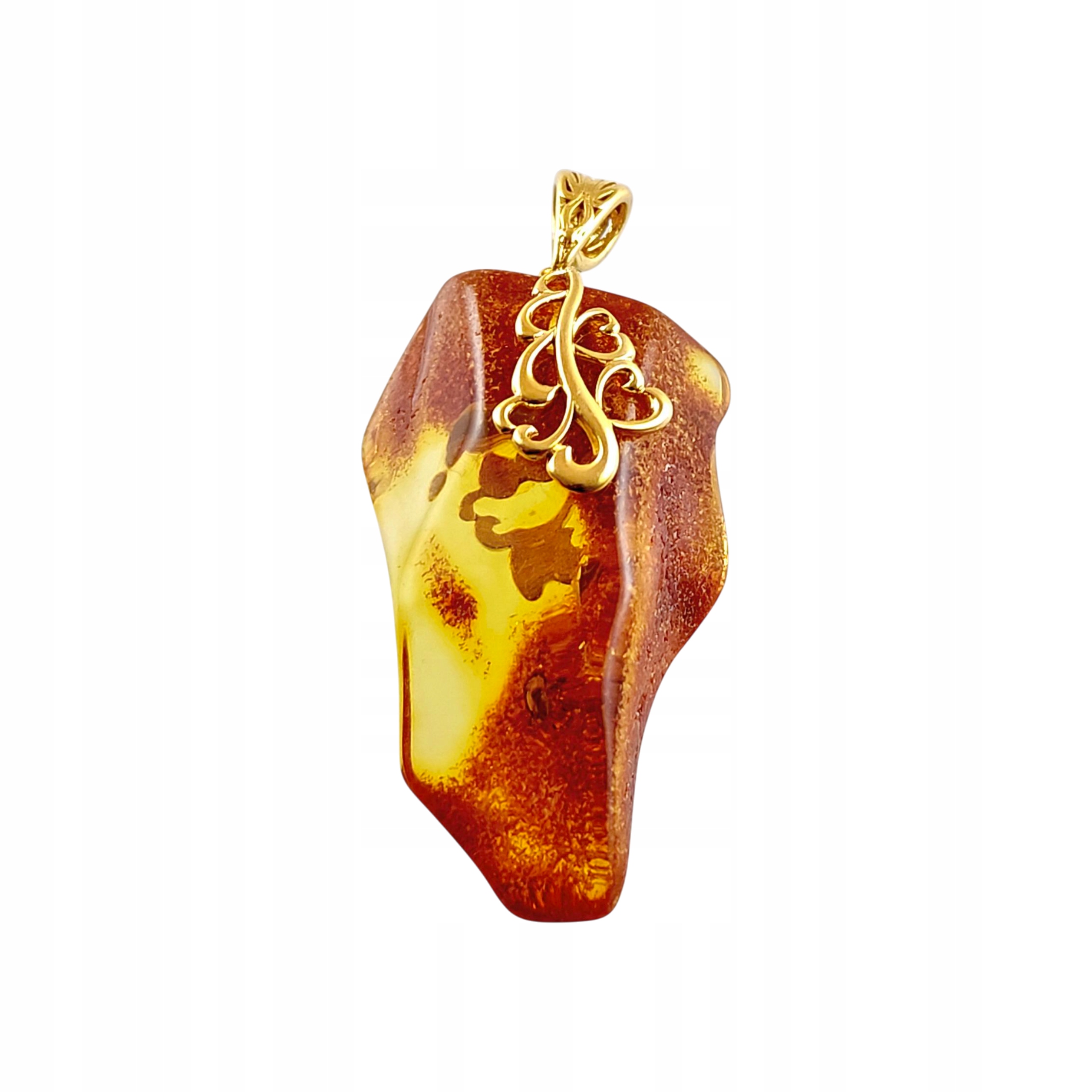 WISIOREK ZŁOTY z CERTYFIKOWANYM Bursztynem na PREZENT Srebro Pozłacane 925