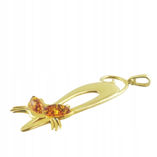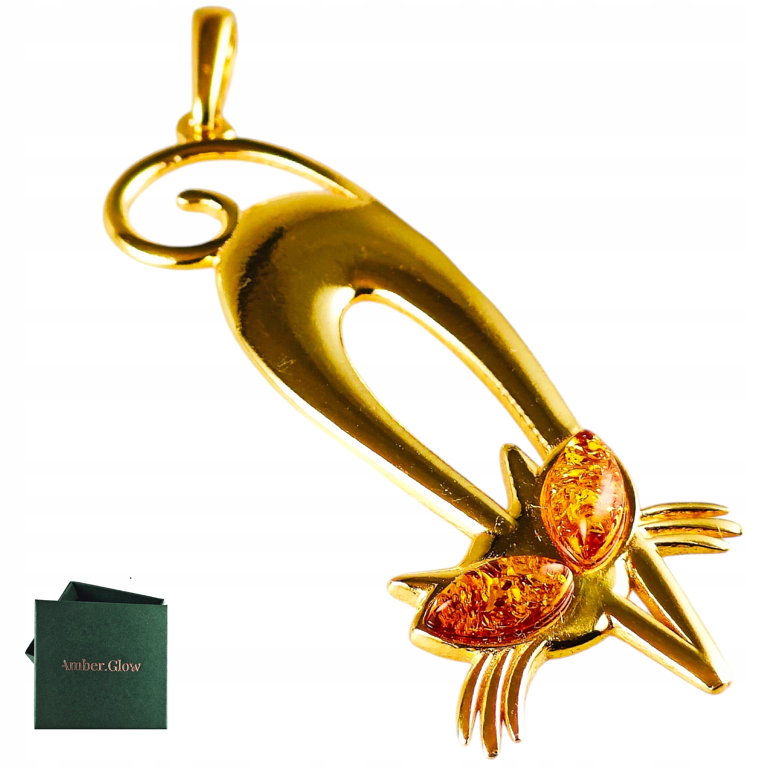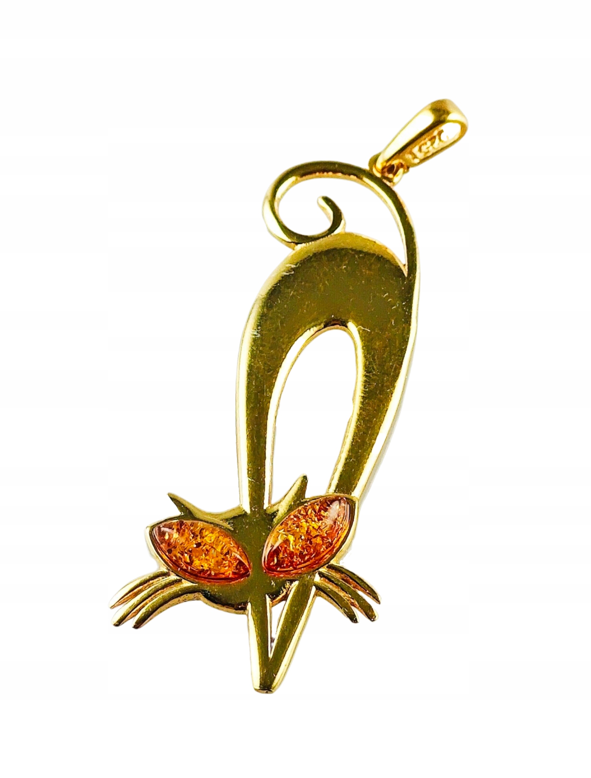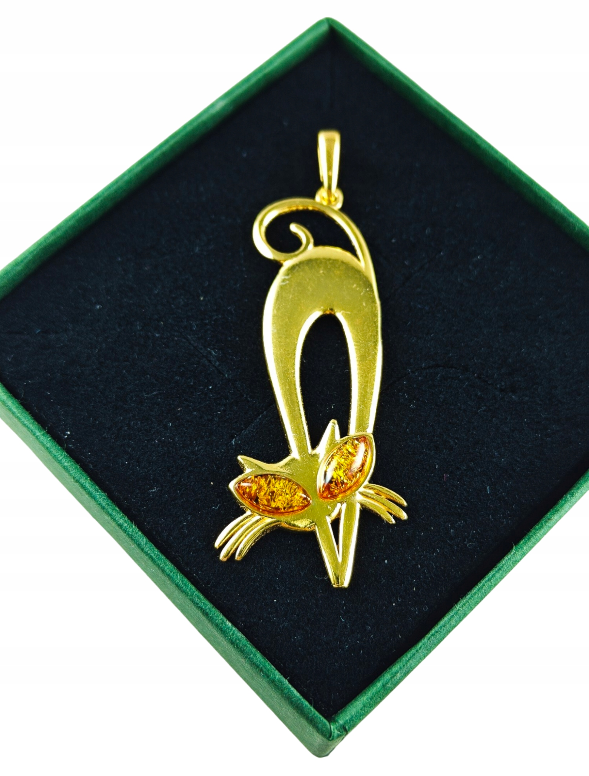 Wisiorek SREBRNY POZŁACANY KOT KOTEK delikatny z bursztynem bałtyckim AG925