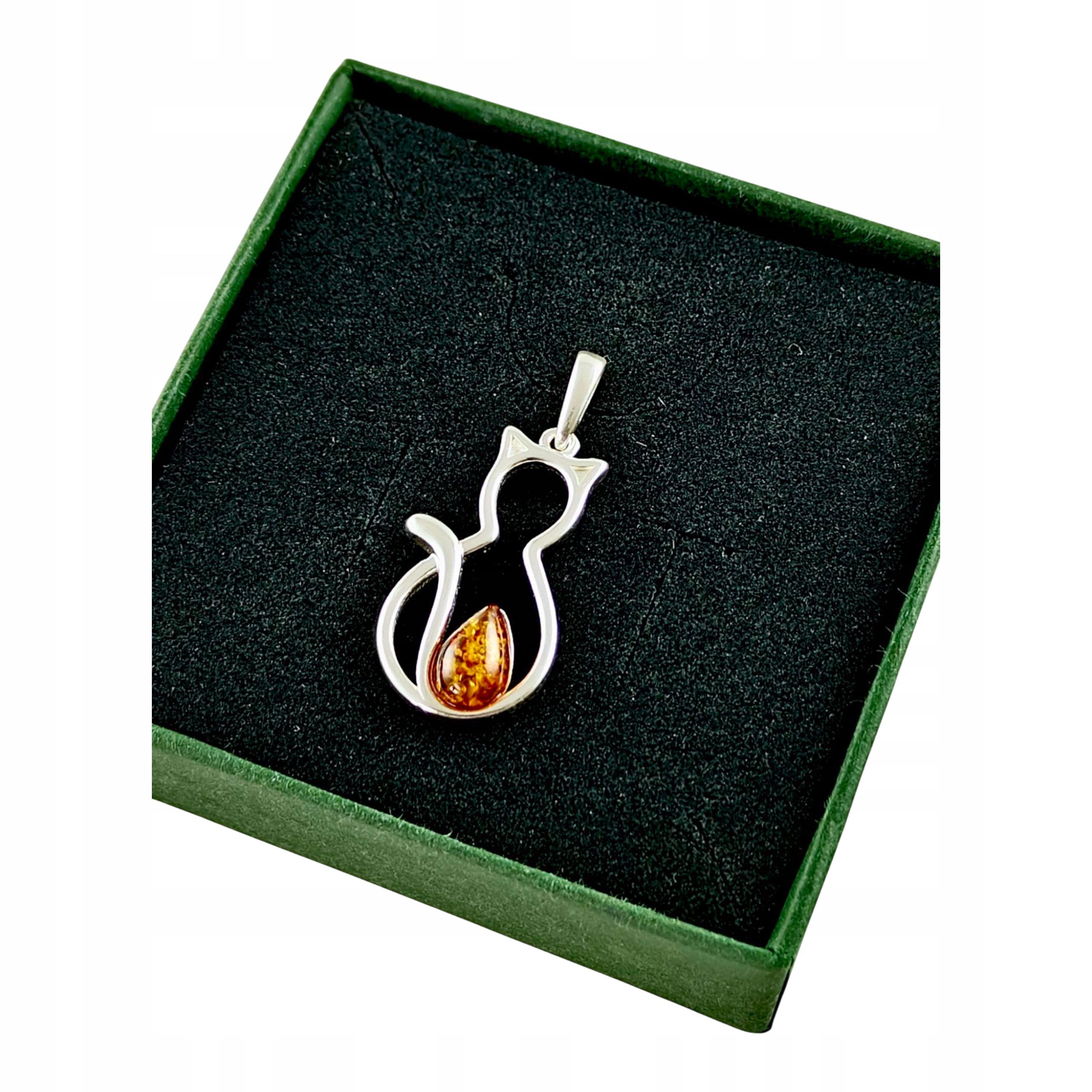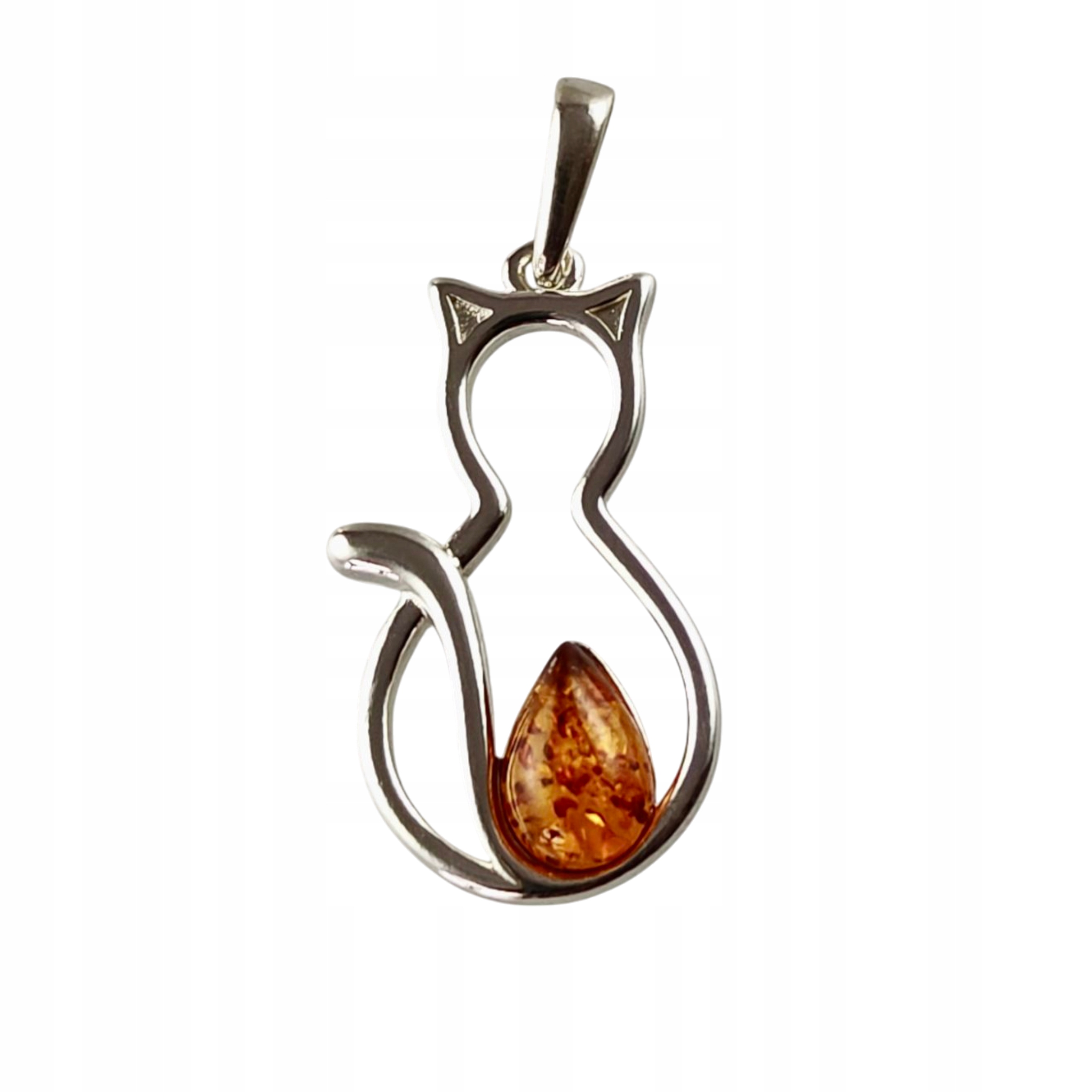 WISIOREK SREBRNY KOT KOTEK z Bursztynem WYJĄTKOWY DUŻY Srebro 925 PREZENT