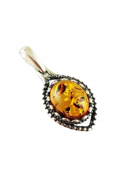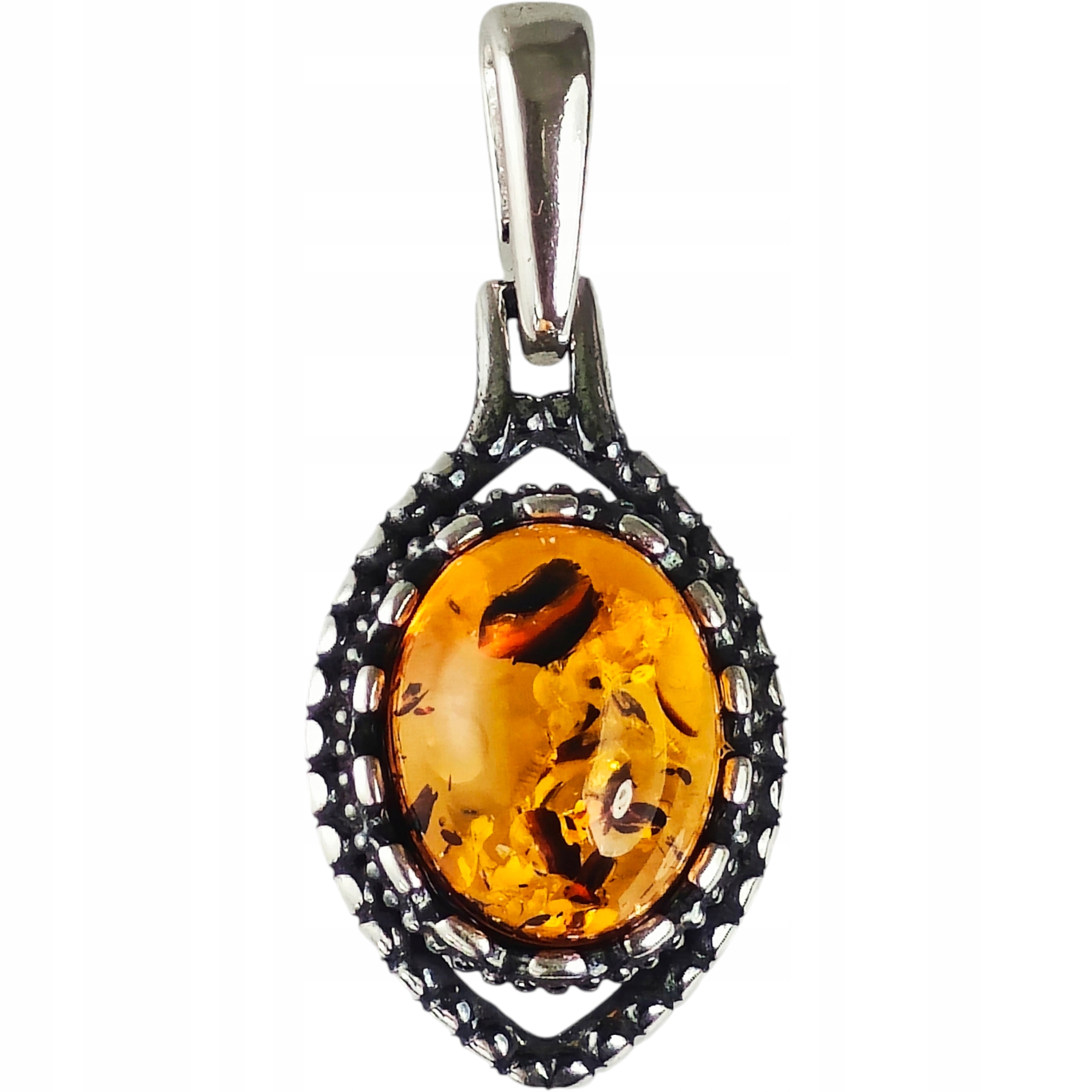 SREBRNY WISIOREK Z BURSZTYNEM ZAWIESZKA OKSYDOWANA ŚLICZNA PREZENT AG 925