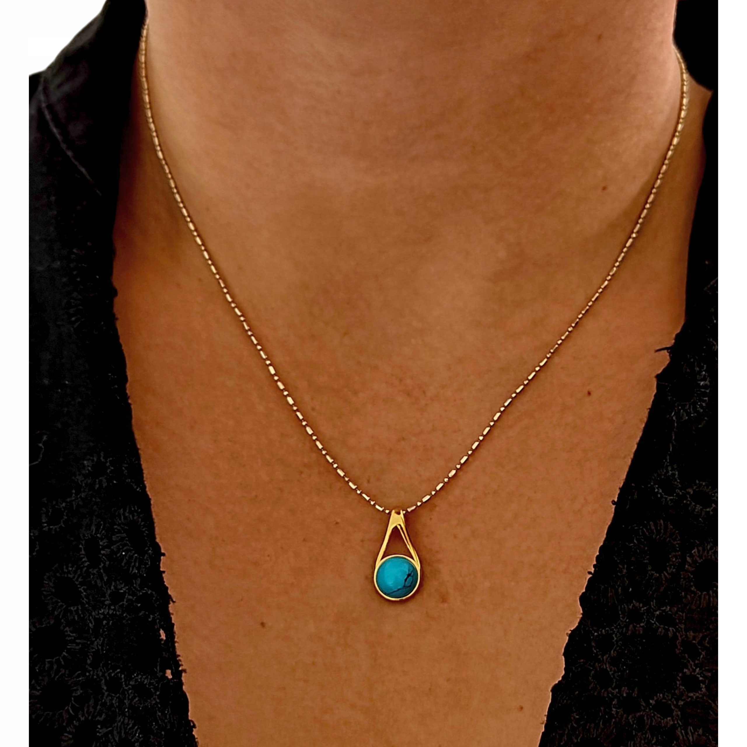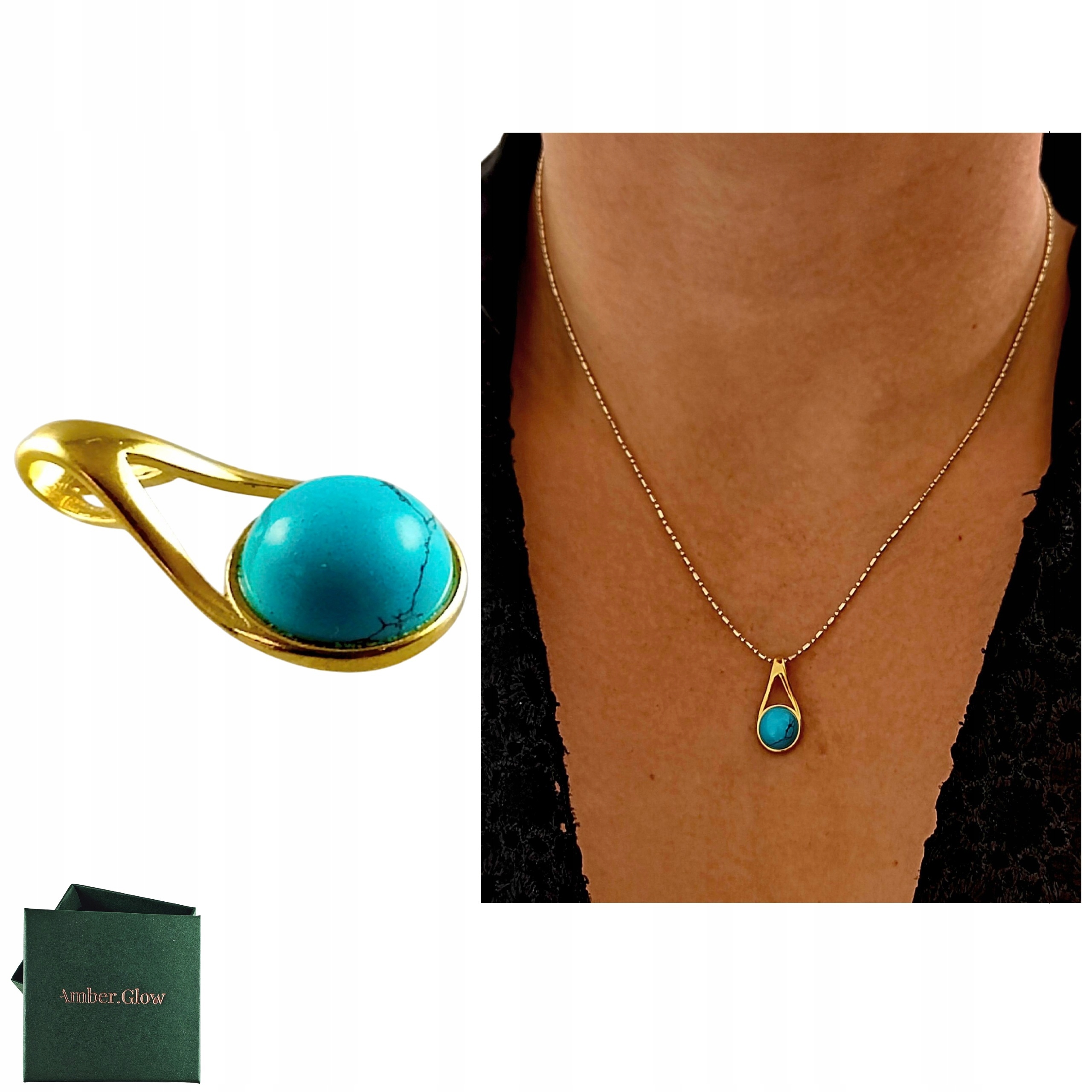 WISIOREK ZŁOTY z TURKUSEM ŚLICZNY DELIKATNY PIĘKNY SREBRO POZŁACANE 925